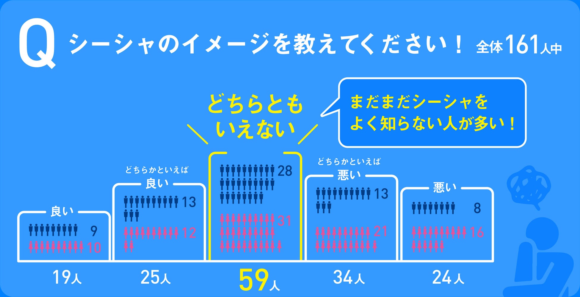 3. 2023年新成人のシーシャを認知している161人のうち44名(27.3%)が「良いイメージ」・59名(36.9%)が「どちらでもない」・38名(23.6%)が「悪いイメージ」と回答。