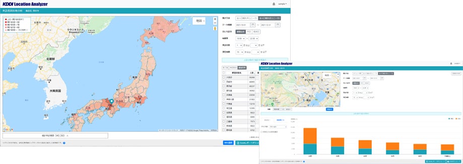 ※位置情報ビッグデータとは、KDDIがauスマートフォンユーザー同意のもとで取得し、誰の情報であるかわからない形式に加工した位置情報データおよび属性情報 (性別・年齢層等)を指します。
