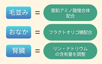 ③毛並み・おなか・腎臓の健康維持にも配慮