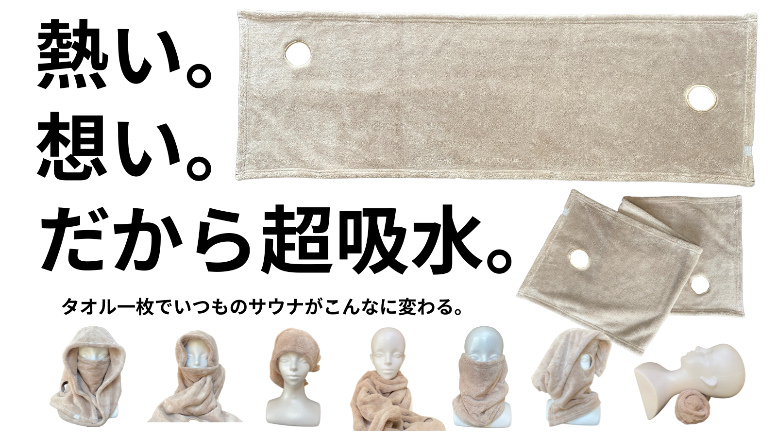本商品は、代表 斉藤の経験をきっかけに誕生しました。休日や空いた時間にサウナに行けるのは最大の幸せです。しかし密室による飛沫の心配。他人の汗がかかり嫌な思いをしたなどサウナ施設に行く方は誰もが体験しますね。せっかく体を綺麗にしたのに着替える際の脱衣所の床が濡れていて再度足を洗いに行くなどせっかくのサウナが台無しに。そこで同じ悩みを持つ人を助けたいとの思いで、タオル一枚でしっかり頭と顔を守り汗をしっかり拭ける本商品を企画いたしました。