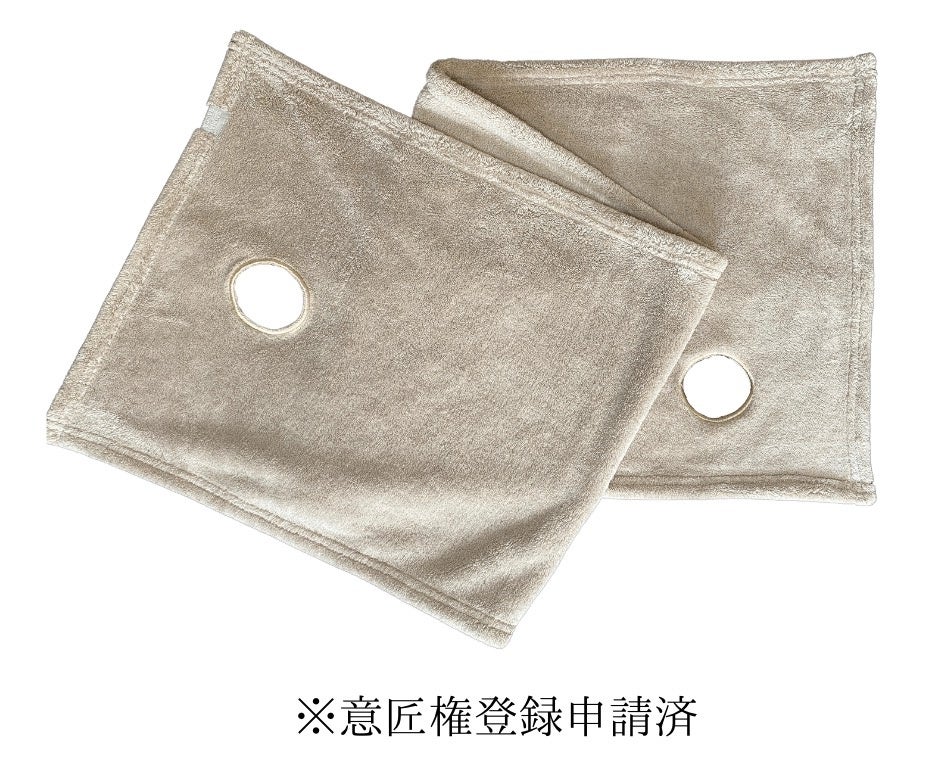 タオルに空いた2つの穴が最大の特徴(意匠権登録申請済み)2つの穴に通すことによりサウナハット、サウナマスク、バンダナ、マフラー、枕などに様々変化。2つの穴が非対称の為様々なサイズに調整可能。もう一つの特徴の吸水性(第三者機関に調査を依頼、実証済み)により濡れた状態でも体が拭けて、バスタオルが要りません。サウナに入る前も中でもしっかり汗を拭けて、周りの人に迷惑をかけません。