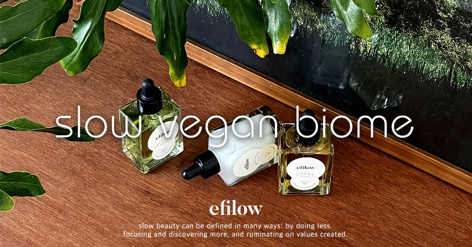 “SLOW LIFE, SLOW BEAUTY”を目指すスキンケアブランド「efilow(エフィロー)」はヴィ―ガンコスメとして動物福祉のため、最低限の効能原料においても動物性原料を徹底して排除した。また、自然から厳選した天然原料と共に肌に最も効果的な原料を組み合わせ、肌の悩み解決のための最適なレシピを実現したヴィ―ガンスキンケアブランドである。