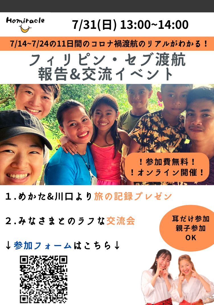 コロナ禍で人や海外と繋がることが困難な状況ですが、Homiracleは将来の可能性を信じ、最大限にコロナ対策を行いながら、2022年7月14日から7月24日までの11日間フィリピンのセブに渡航することができました。