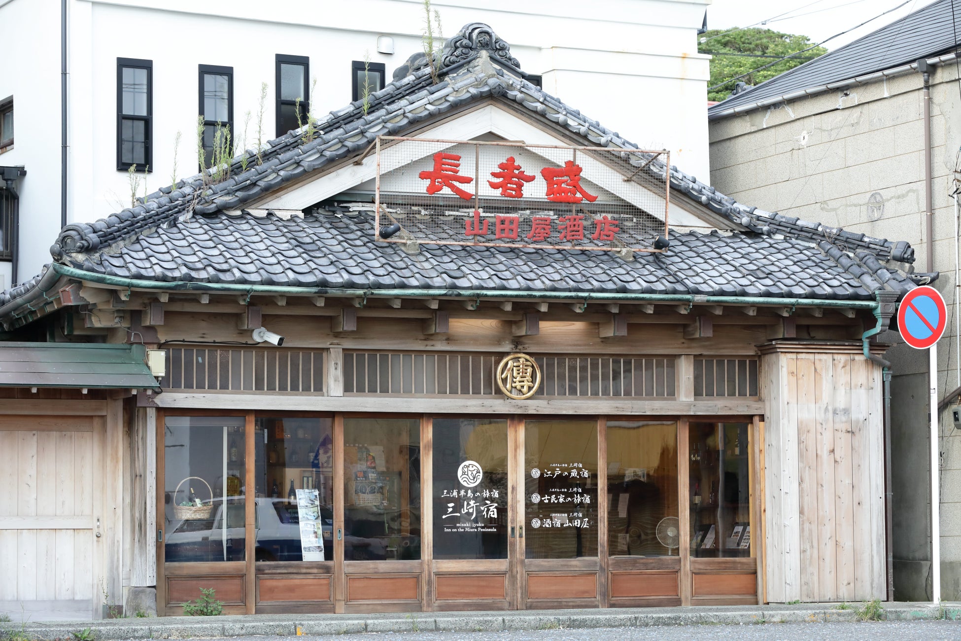 商店街の入り口に位置する「酒宿山田屋」から、三崎の風情をお楽しみください。