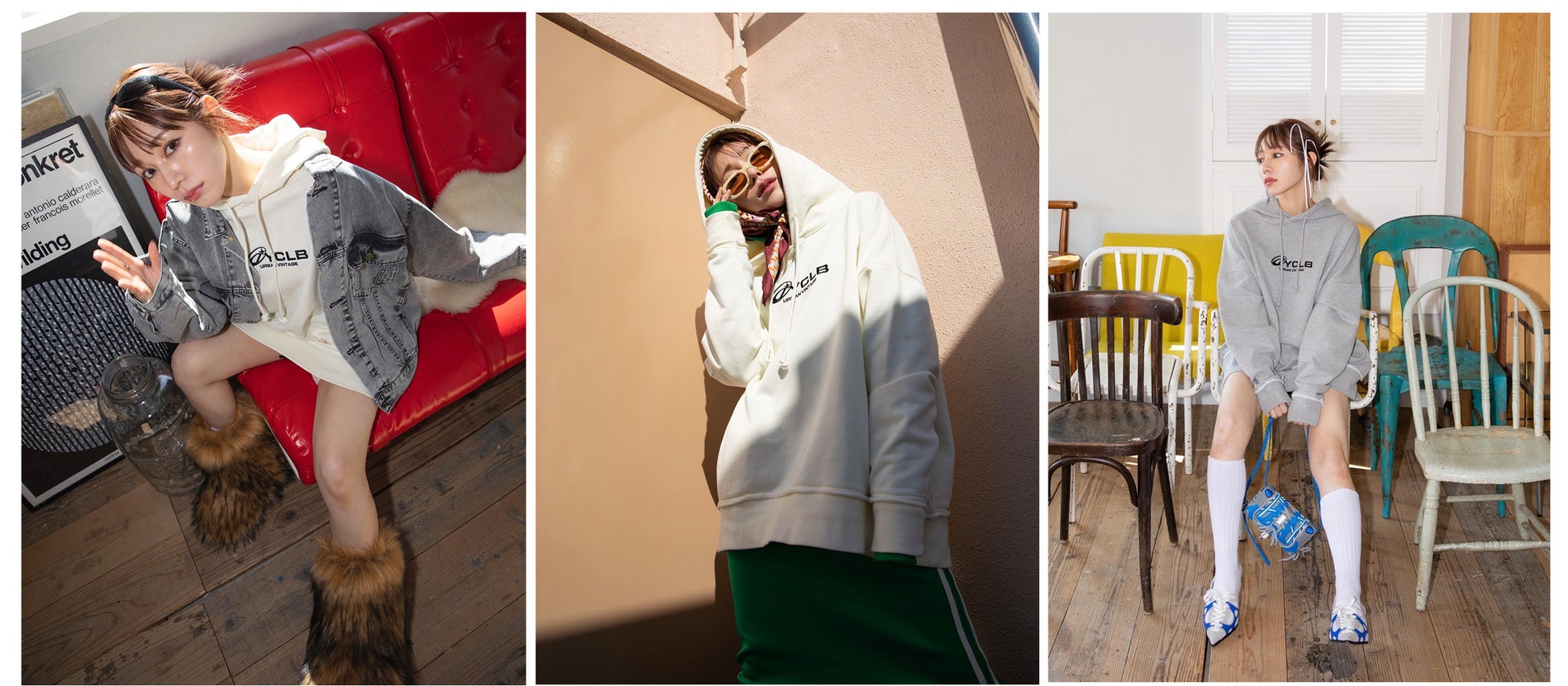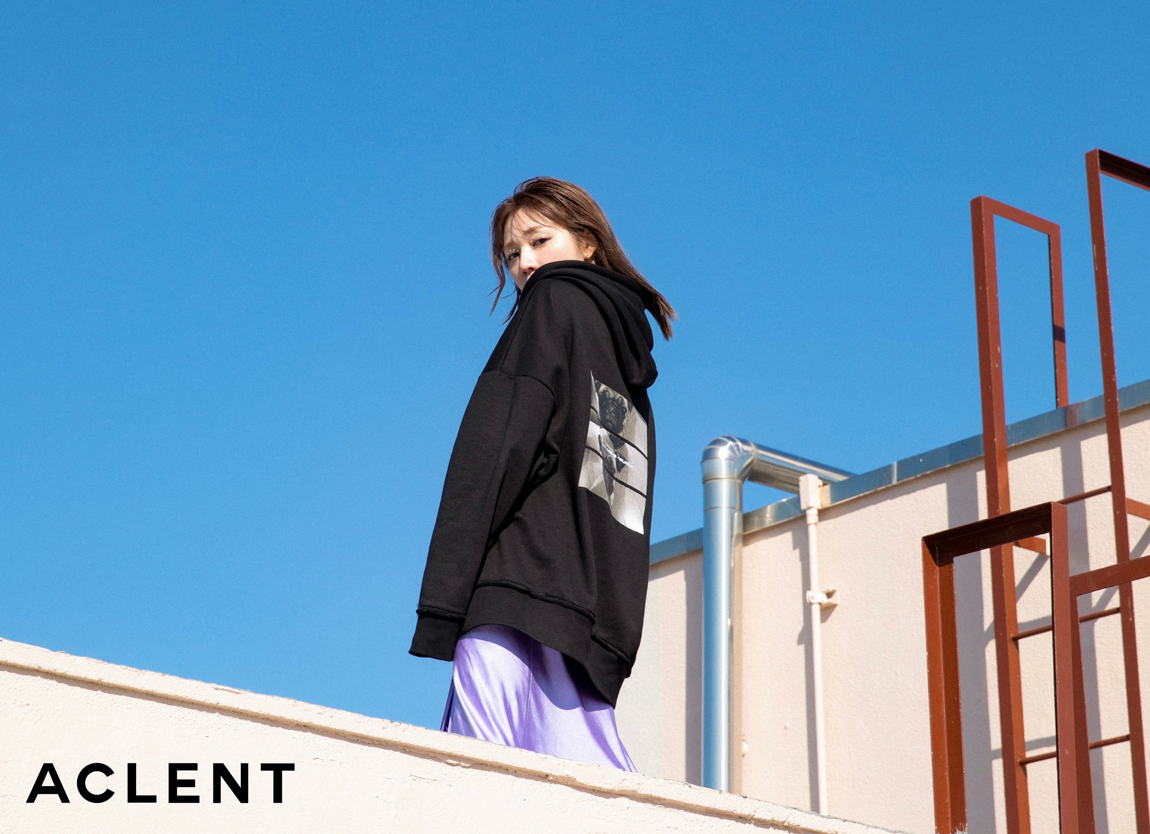 「小柄な方から長身の方までが着ていただけるサイジング」をテーマにフードの大きさ、ボリューム感までこだわりました。バックデザインには古川優香さんの愛犬”ふくちゃん”をグラフィックフォトプリントに落とし込み、裾のダメージ加工でヴィンテージ感をプラス。フロントデザインにはコラボレーション限定の”YACLB”ロゴと、ACLENTのaをモチーフにしたオリジナルロゴを取り入れ、コラボレーションならではのデザインとなっております。