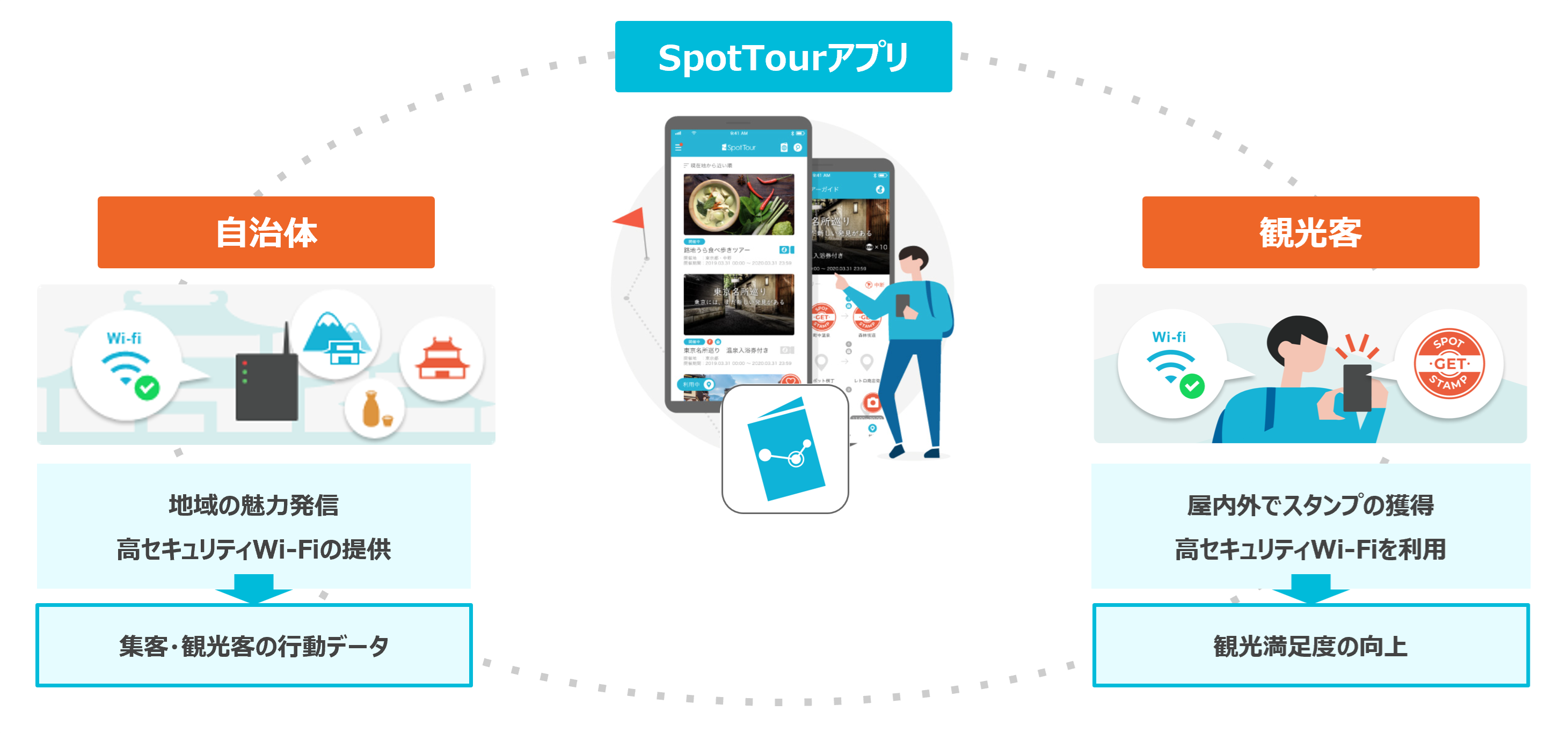 株式会社ワイヤ・アンド・ワイヤレス(本社:東京都中央区、代表取締役社長:向吉 智樹、以下、Wi2)と、スポットツアー株式会社(本社:東京都千代田区、代表取締役社長:鳥居 暁、以下、スポットツアー)は、自治体等に「地域の魅力発信」と「安心なWi-Fi通信環境」を手軽に導入いただくことを目的として、「SpotTour」アプリに高セキュリティWi-Fiへの自動接続機能を実装しました。