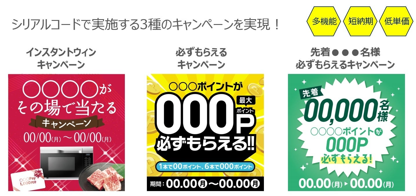 シリアルコードを使ったマストバイキャンペーンに必要なほとんどの機能を網羅しております。