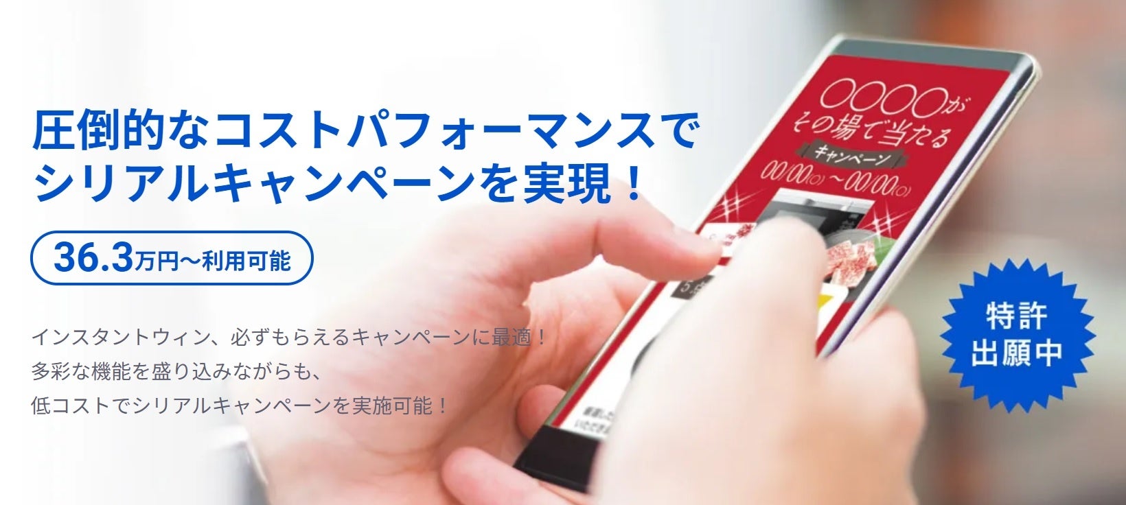 『インスタントウィン』、『必ずもらえるキャンペーン』、『先着順で必ずもらえるキャンペーン』が圧倒的な低価格で運用可能!最短1日でシステム構築可能!