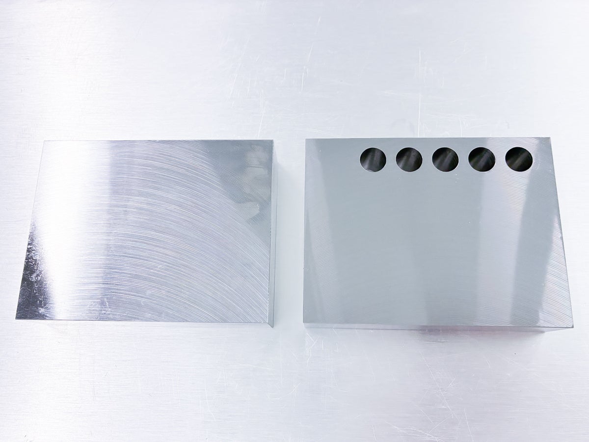 被削材(S50C 板厚30mm)にΦ14の貫通穴を5穴連続であけ、加工時間・穴径精度・真円度・穴の内径面粗さ等を測定します。