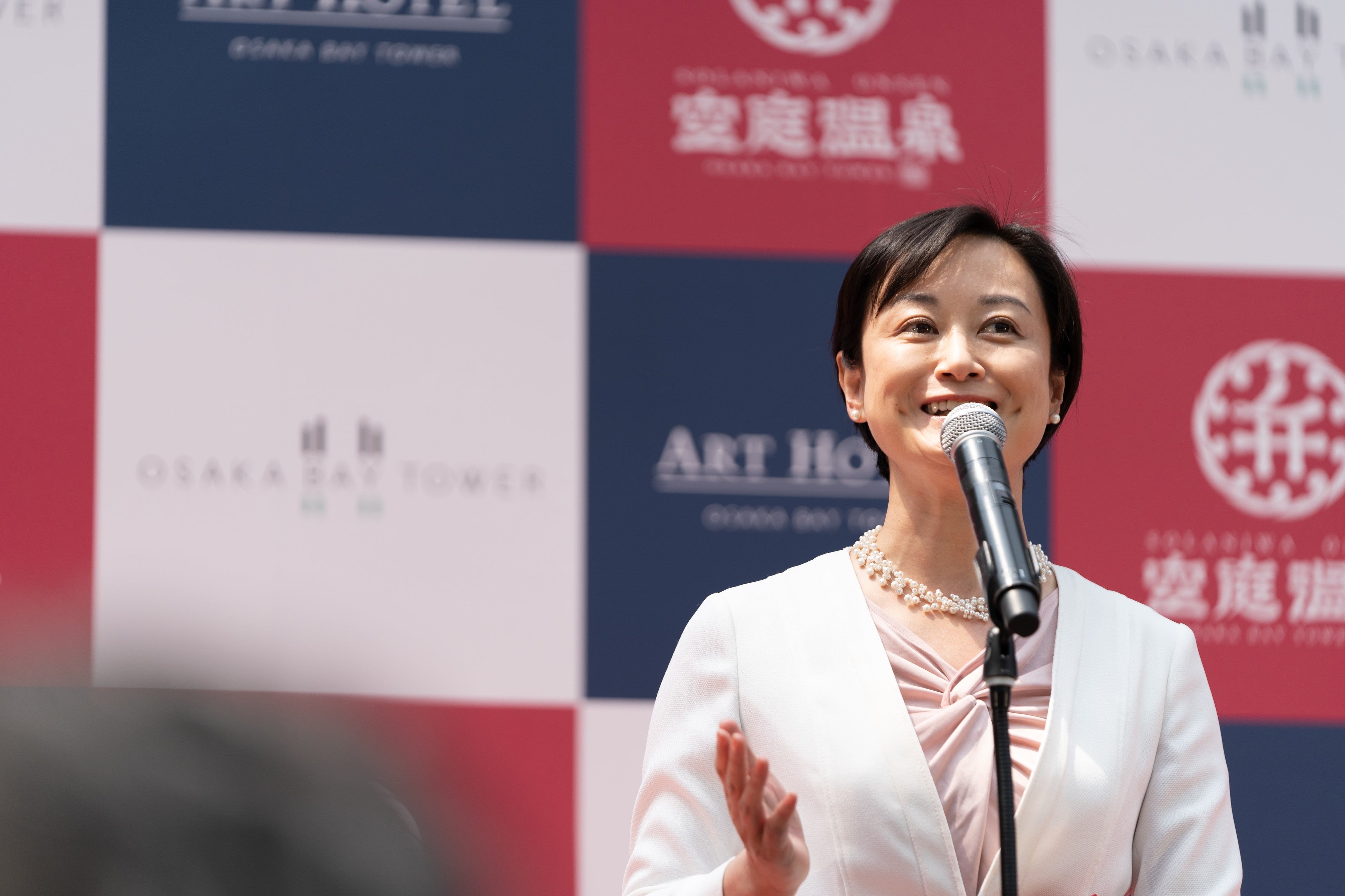 再生計画の第一弾として、2018 年 3月に株式会社マイステイズ・ホテル・マネジ メントが運営するフルサービス型ホテル「アートホテル OSAKA BAY TOWER」のリブランドオープン。 第二弾として、2019年2月に延床面積約5,000坪の天然温泉を有する関西最大級の都心型温浴テーマパーク「空庭温泉 OSAKA BAYTOWER」を開業し 、弁天町 エリアの再開発・再生を進めてきました。今回の商業施設・大規模リニューアルは、本再生計画の集大成として位置付けています。この記念すべき式典に、たくさんの方々がお祝いに駆けつけてくださいました。