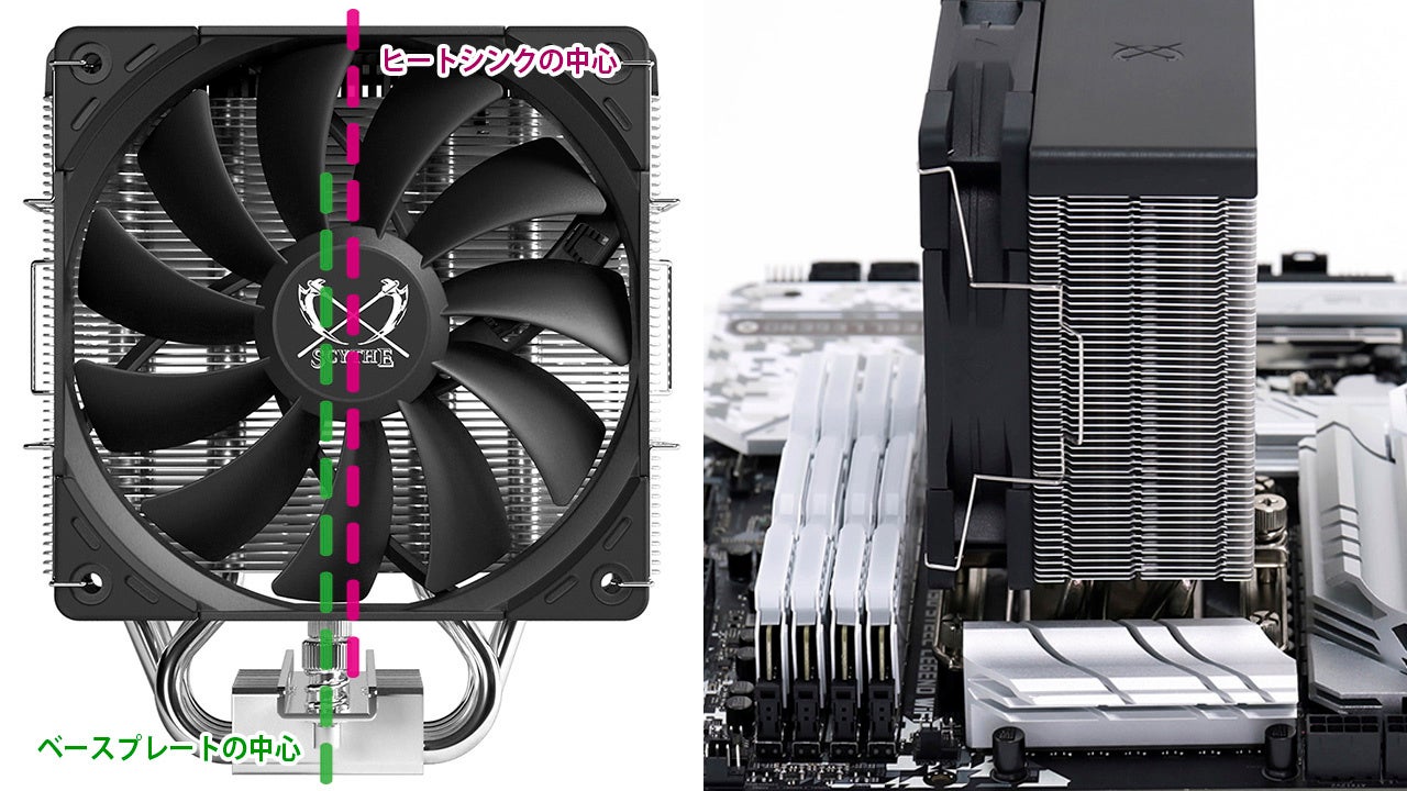 6mm径ヒートパイプを4本採用、0.4mm厚のフィンによるヒートシンクの高剛性化やベースプレートのサイズ変更など、全面的に設計を見直し。ヒートシンクのトップ部にはヘアライン入りのブラックカバーを装飾し、外観面においてもアップデート。シンプルかつコストダウンを追求した新型リテンション「H.P.M.S.V」も標準付属。