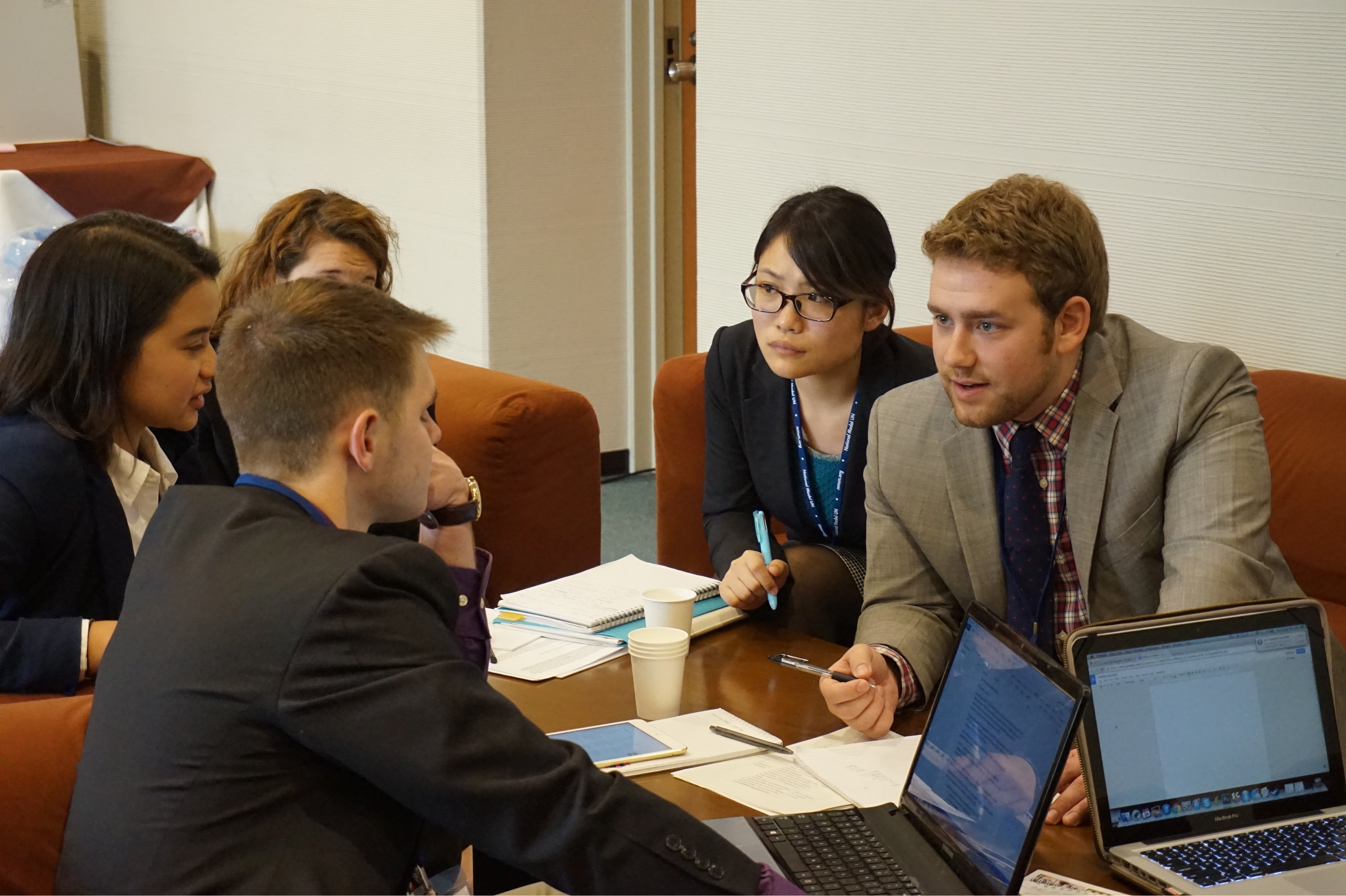 本学では、英語力や会議でのコミュニケーション能力、リサーチ力を磨くため、模擬国連の授業を開講し、毎年模擬国連世界大会へ学生を派遣するなど、模擬国連の活動に注力しています。