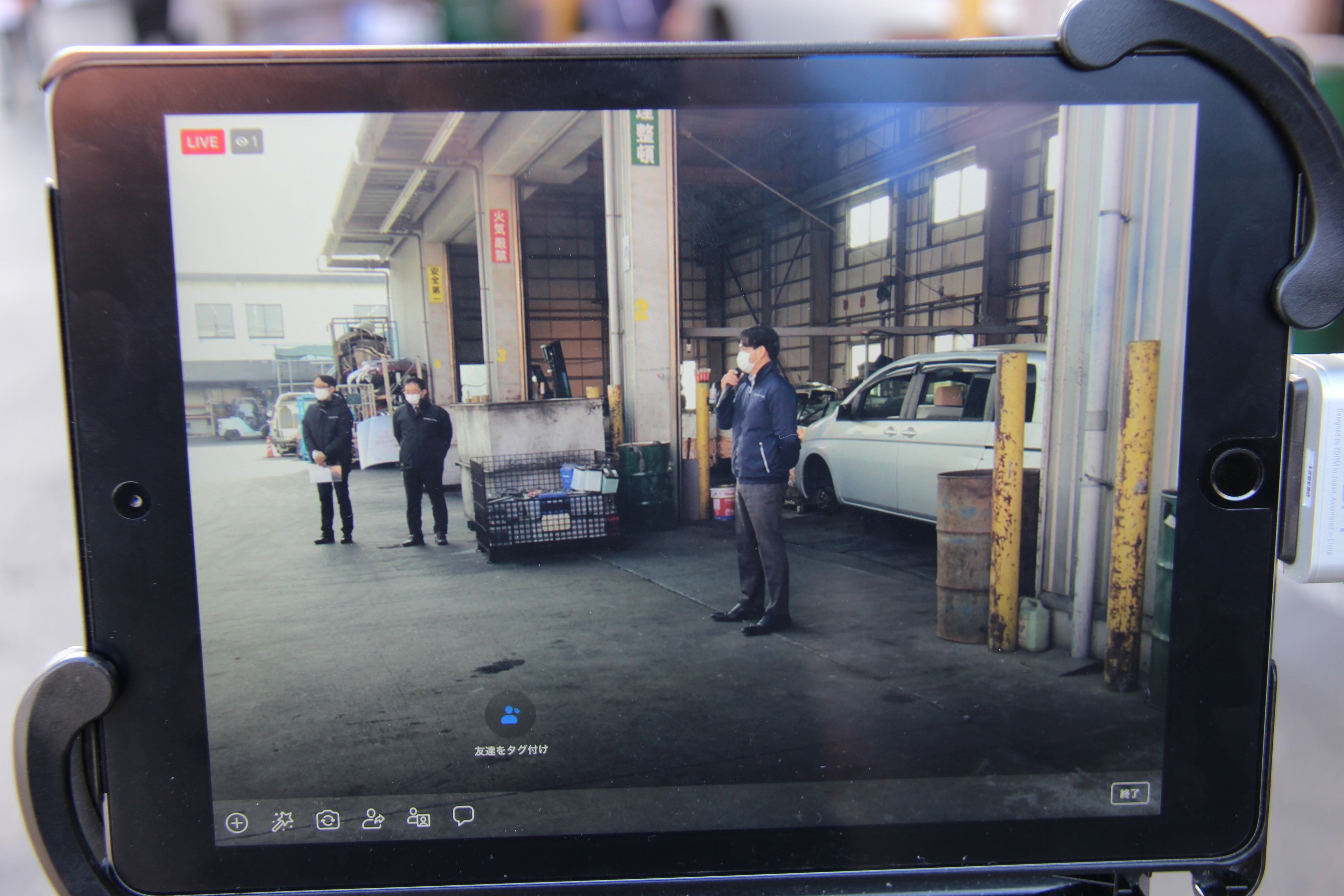 ・全体朝礼の社内ライブ配信(自席待機者向け)