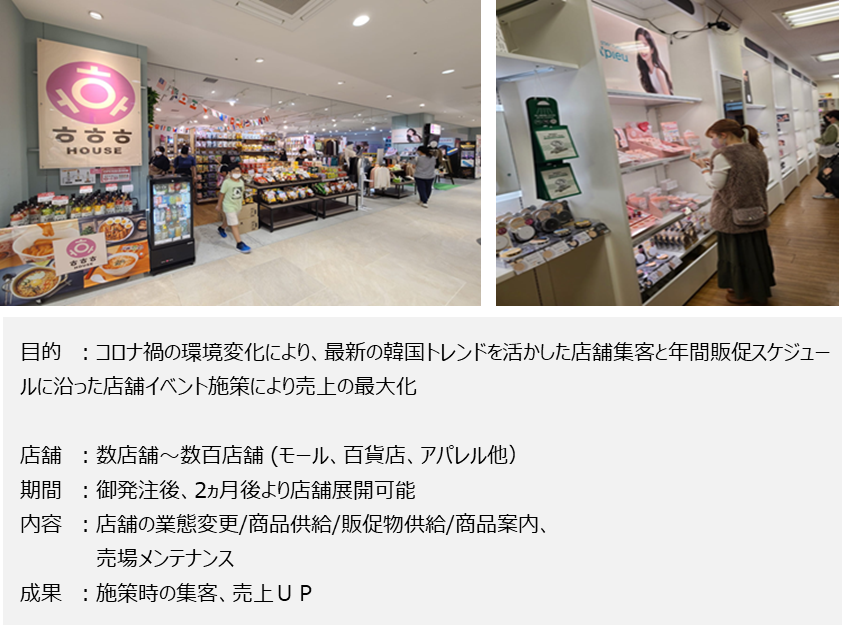・SHOP-in-SHOPで、韓国最新トレンド、商品・販促ノウハウを独自に入手したい企業様