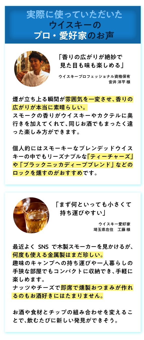 香りで際立たせる│4種類のスモークチップの香りでいつもの晩酌をワンランクアップ。