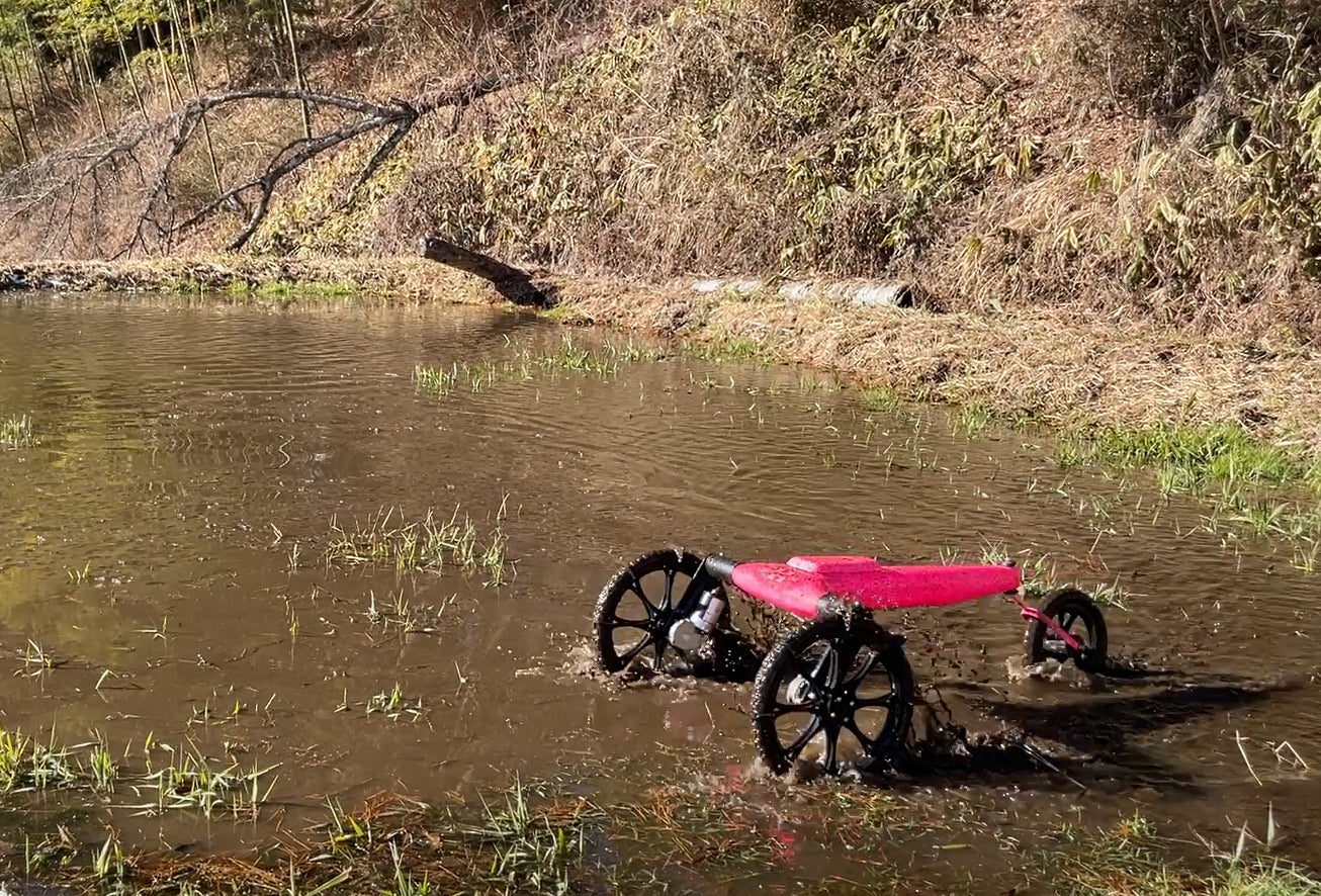 「JAPAN MOBILITY SHOW 2023」では開発中のGPS搭載版を展示予定。一度設定すれば圃場に置くだけで、1反(1,000平米)あたり数分の手間で除草できるため、 人力で水を濁らせるのと比較し約15倍の生産性向上が期待できます。