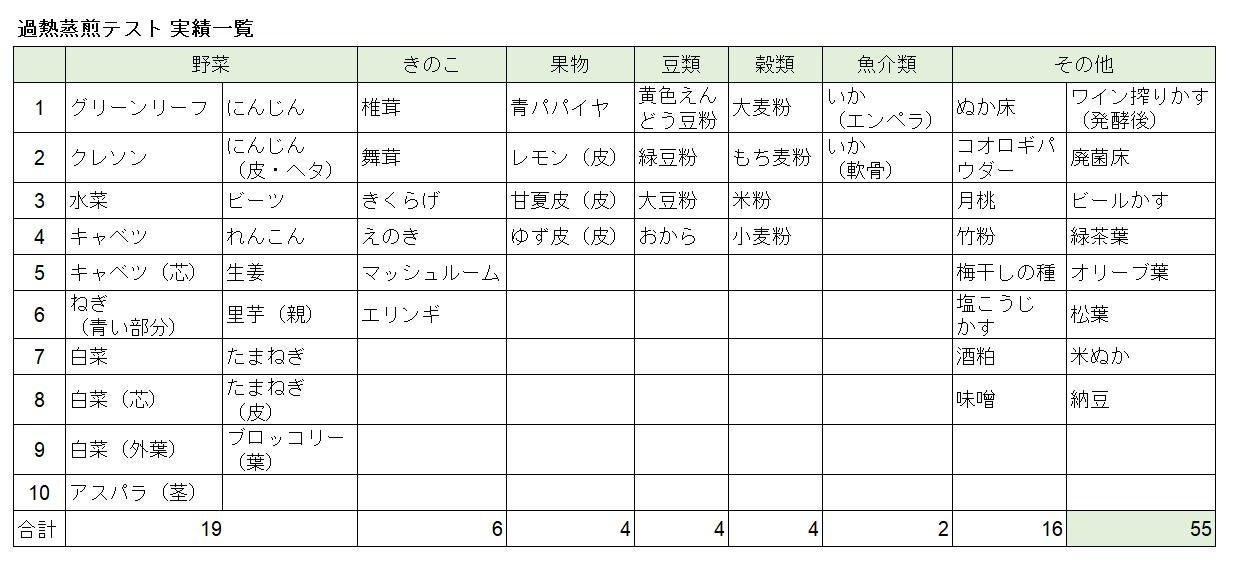 - 約25社と55品目にわたる食材で過熱蒸煎テストを実施。SDGsの取り組みへのニーズにマッチ