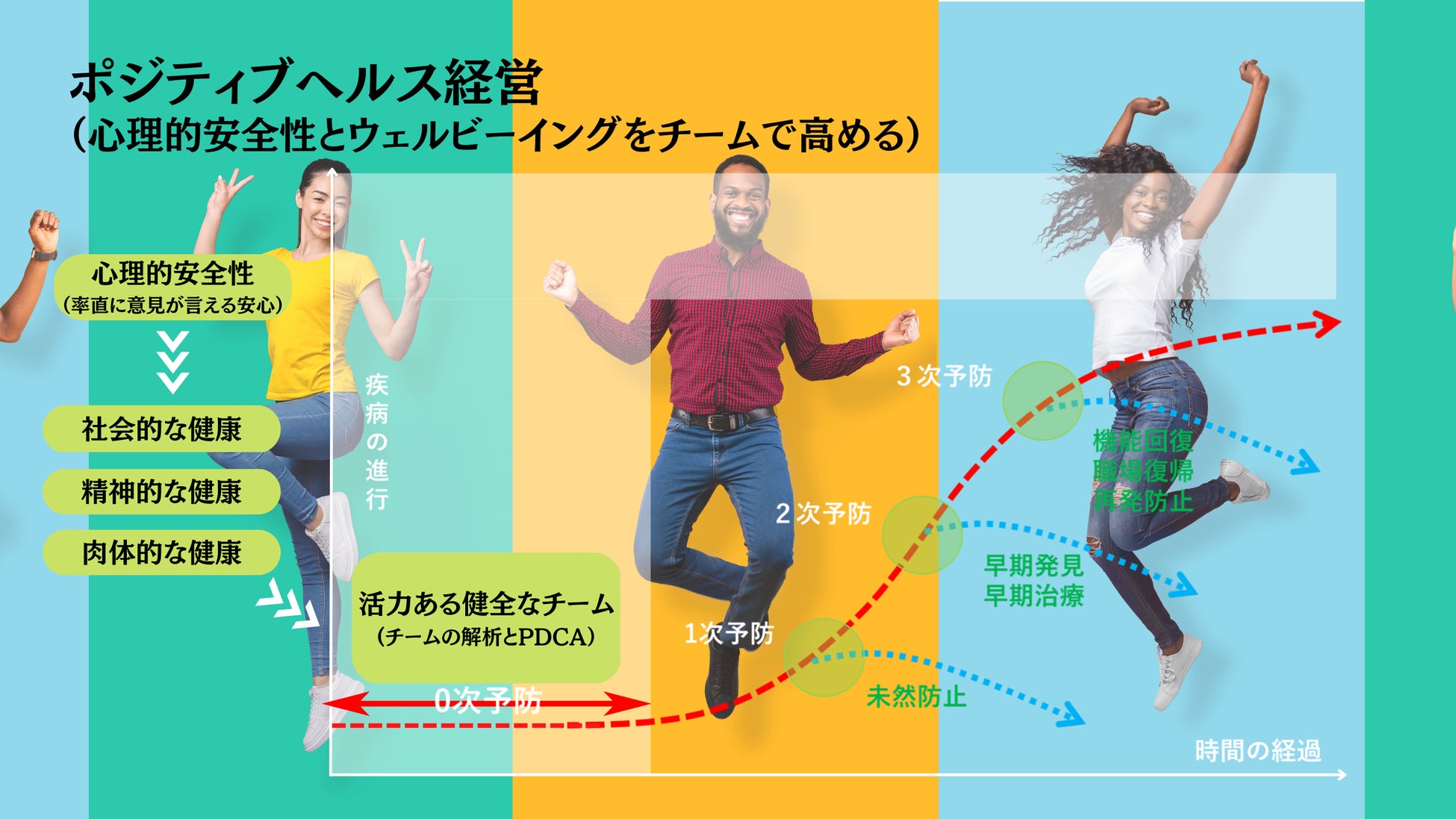 NOSTでは、“ポジティブヘルス経営”というコンセプトのもと、「心理的安全性とウェル―イングをチームで高める」ことに注力しています。「活力ある健全なチーム」としての心身の健康と生産性のアップは、チームを対象として積極的にコンディショニングケアを進めることで疾病の発生も規模も抑えることができるという「ポジティブメンタルヘルス」という産業保健の現場での新しい考え方にも通じます。