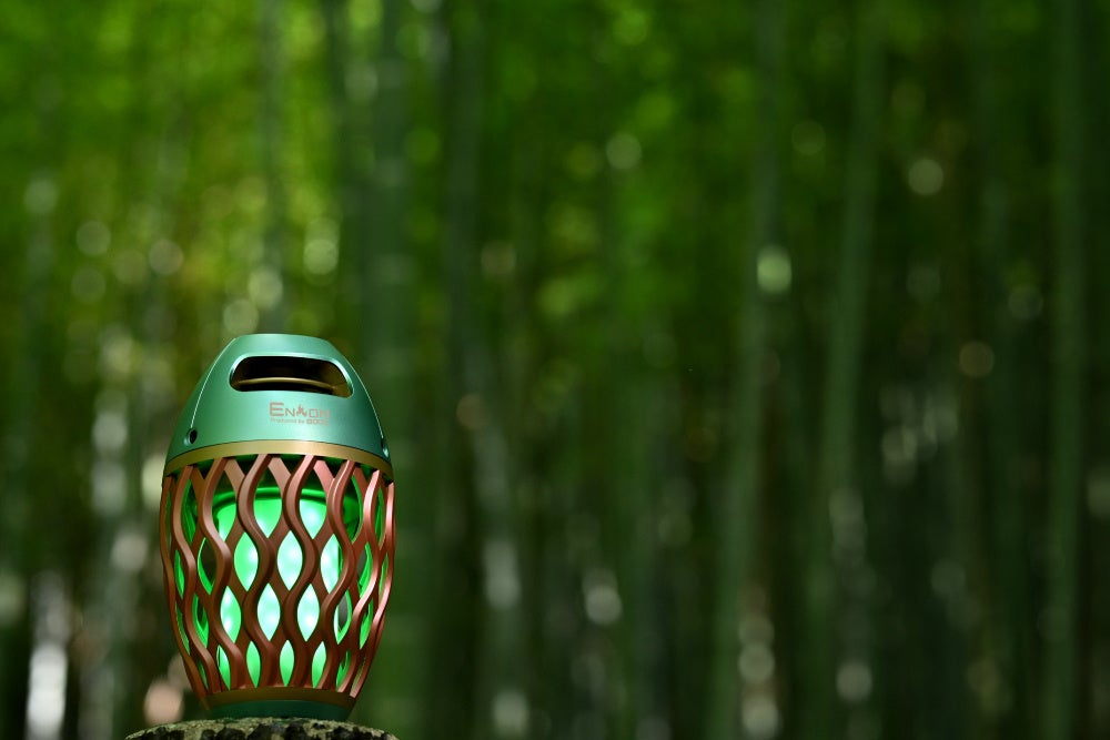 ランタン風Bluetoothスピーカー【炎音en-on】に、グリーンのLEDがアガる!メタリックのNew Color、青竹色(あおたけいろ)が新登場!