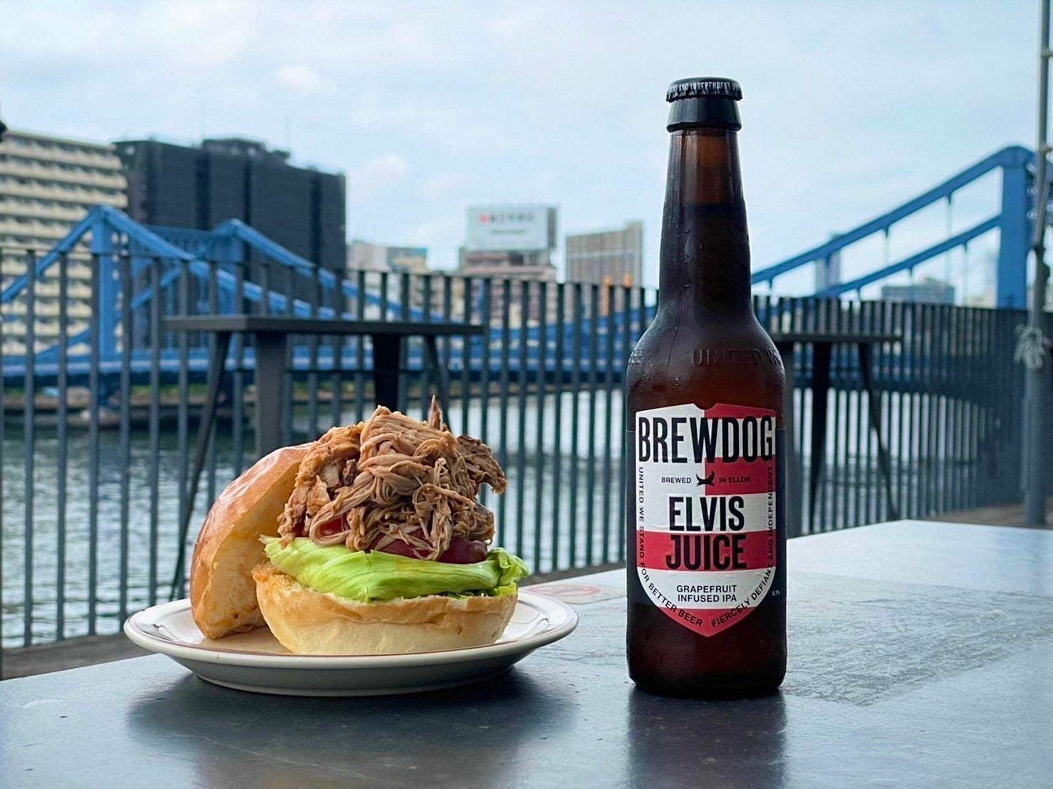 ブランドを代表するシグネチャー商品同士のペアリング。PUNK IPAのスパイシーな苦みが、J.S.バーガーのクセになる味わいを引き締める。