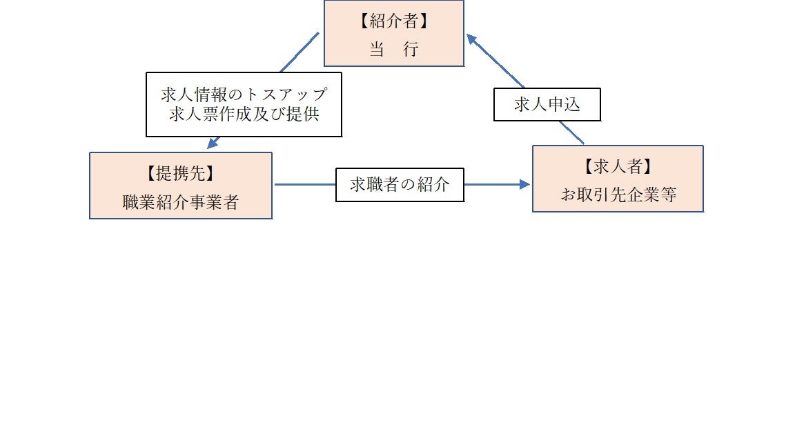 当行担当者が、お取引先企業が求める「経営幹部人材」や「デジタル人材」などをお伺いし、当行と提携した職業紹介事業者と連携して、お客さまのニーズに応じた適切な人材を紹介し、ハイレベルな人材のマッチングを実現いたします。