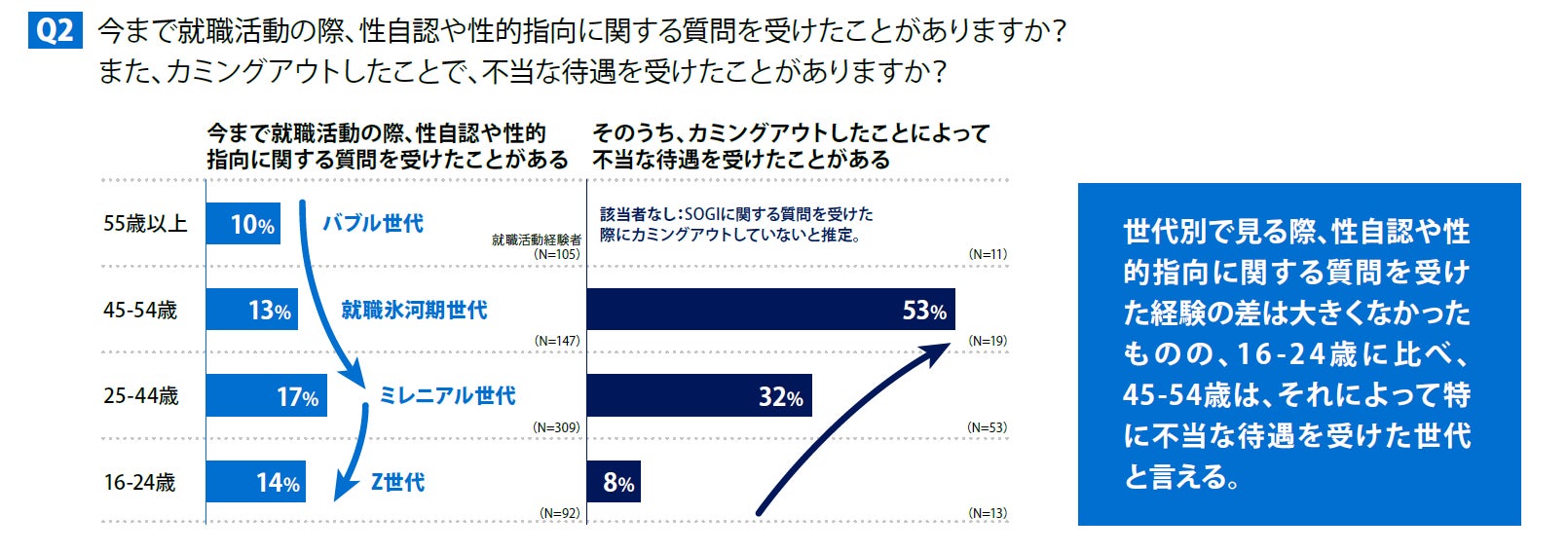 - 就職活動時に性的指向・性自認に関する質問を受けた人のうち59%が不当な扱い