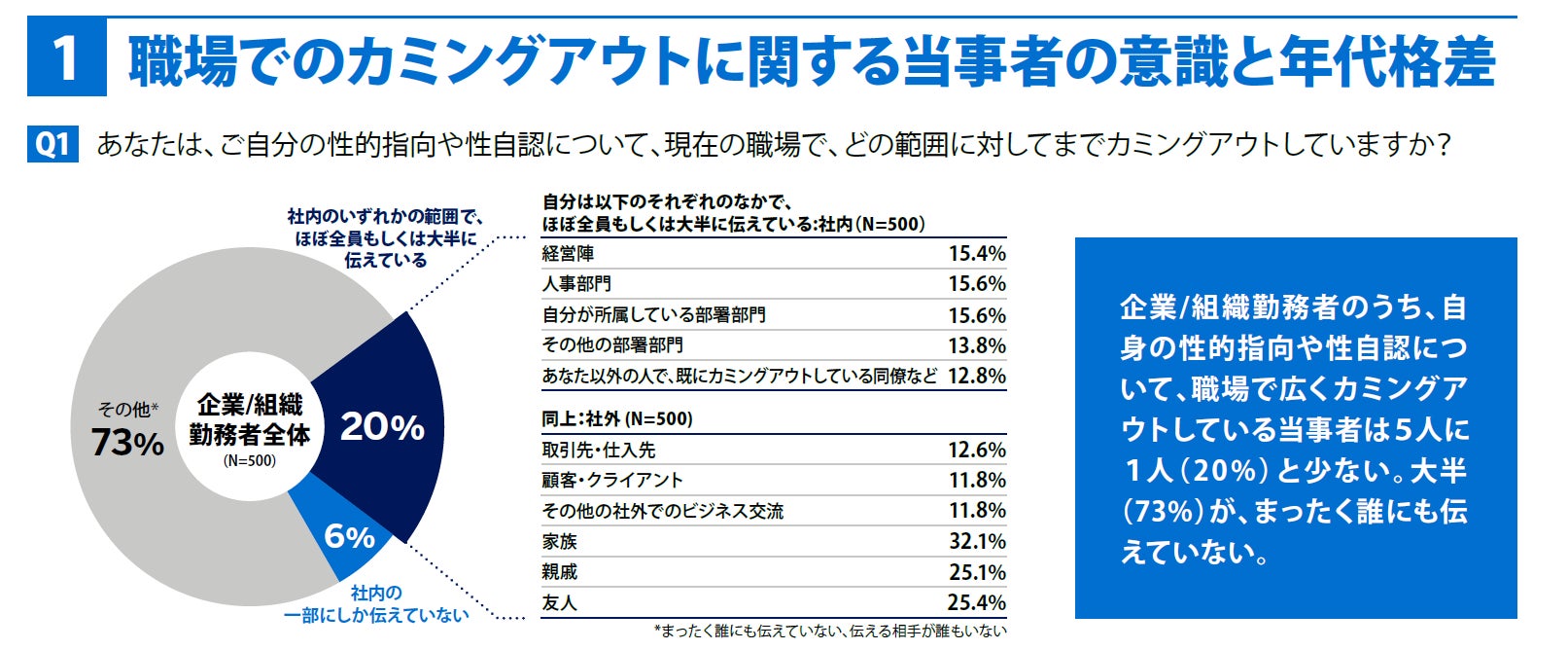 LGBTQ+の職場でのカミングアウトは5人に1人 理解促進など職場環境整備に取り組んでいる企業は3割に止まる