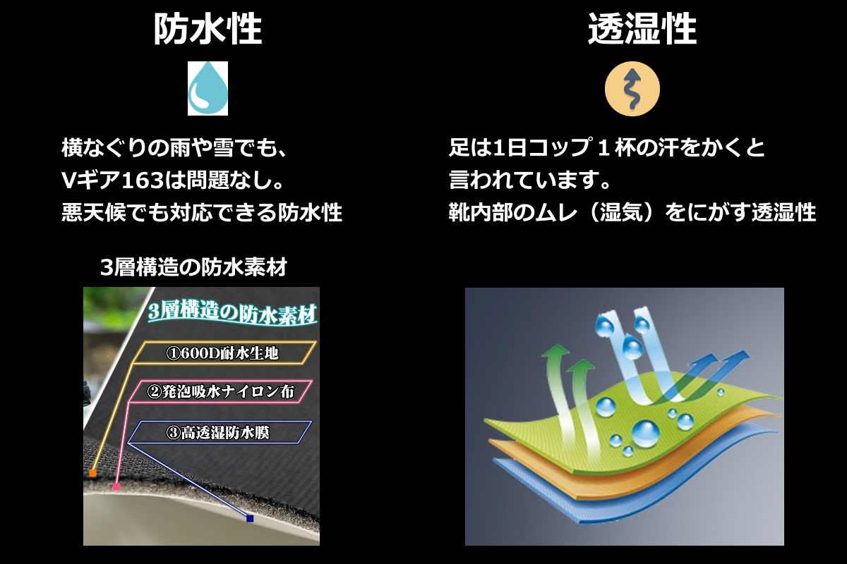 何度も改良を重ね、防水ブーツ『Vギア163』が誕生しました