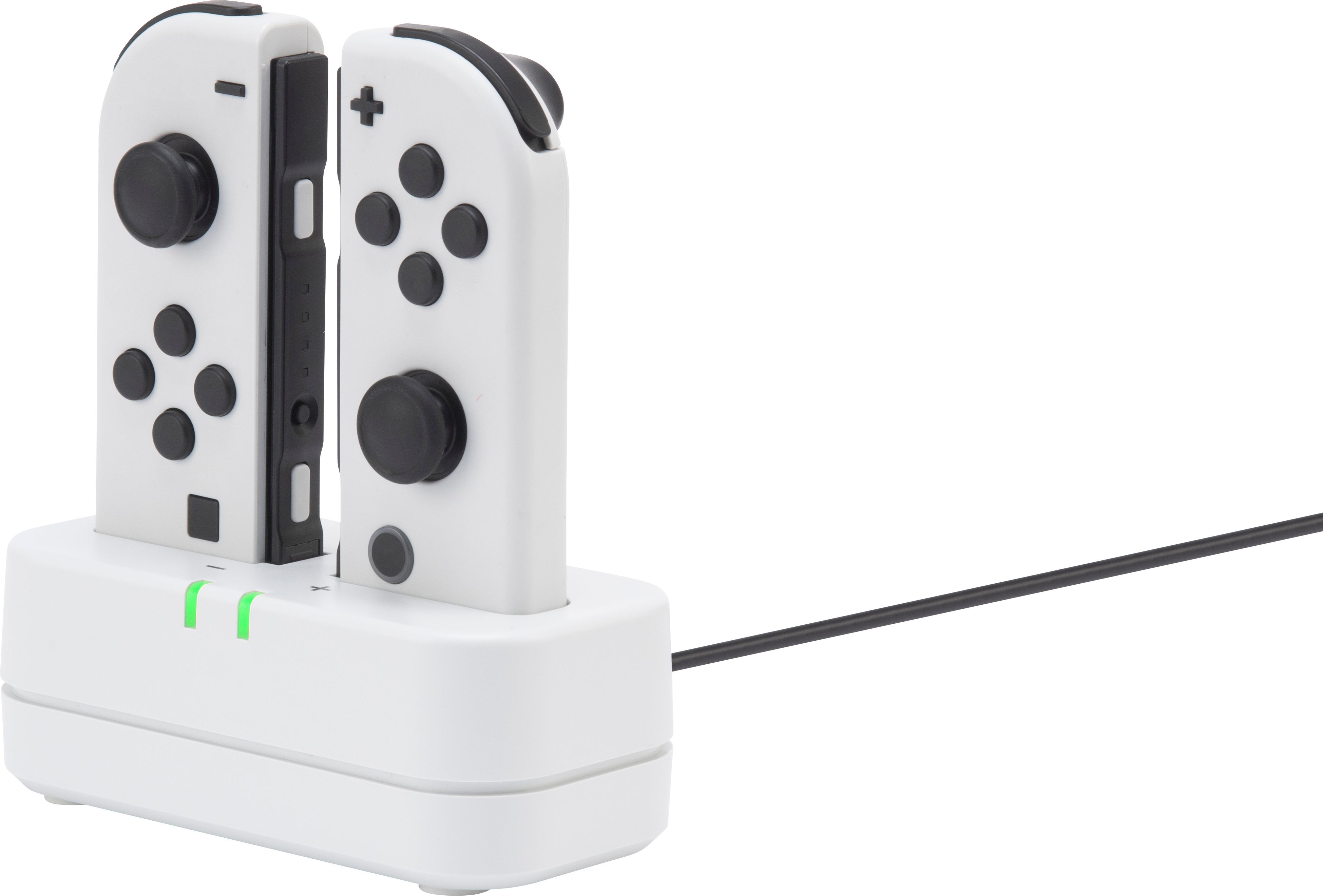 Nintendo Switch Joy-Con(L)(R)を各2個、合計4個を同時に充電できるスタンドです。SwitchドックのUSBポートや、別売のUSB ACアダプター、モバイルバッテリーなどに本製品のUSBケーブルを接続して、Joy-Conを差し込むだけで簡単に充電ができます。