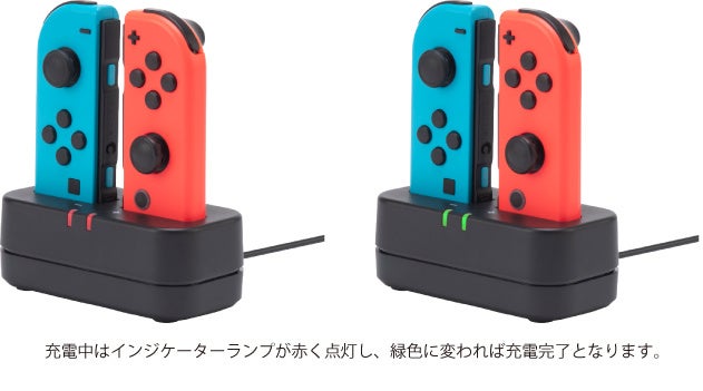 ※ Switch用『ファミリーコンピュータ コントローラー』ほか、Switch Joy-Con(L)(R)以外の機器の充電には対応しておりません。