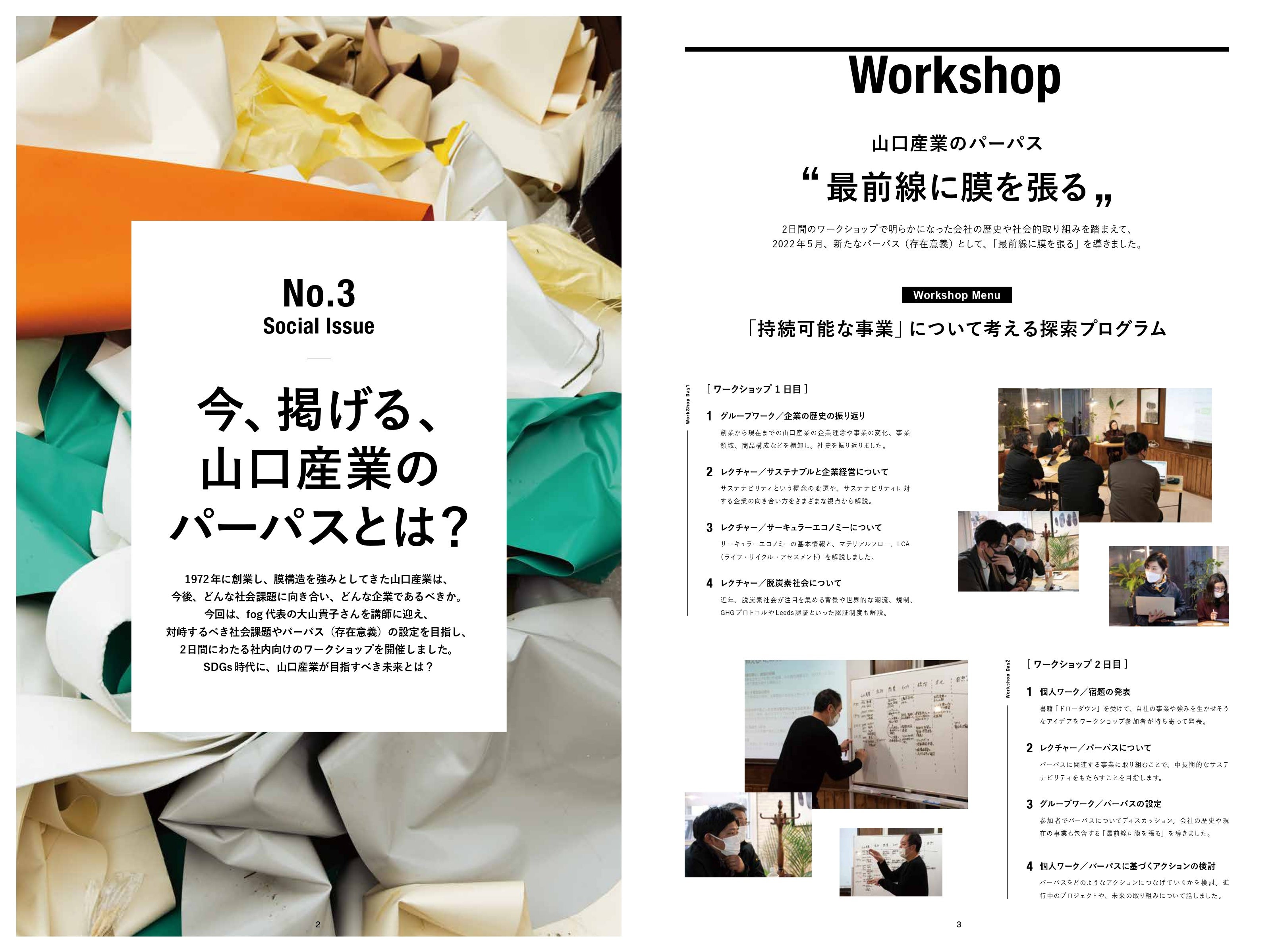 2日間のワークショップで明らかになった会社の歴史や社会的取り組みを踏まえて、新たなパーパス(社会的な存在意義)として、「最前線に膜を張る」を導きました。