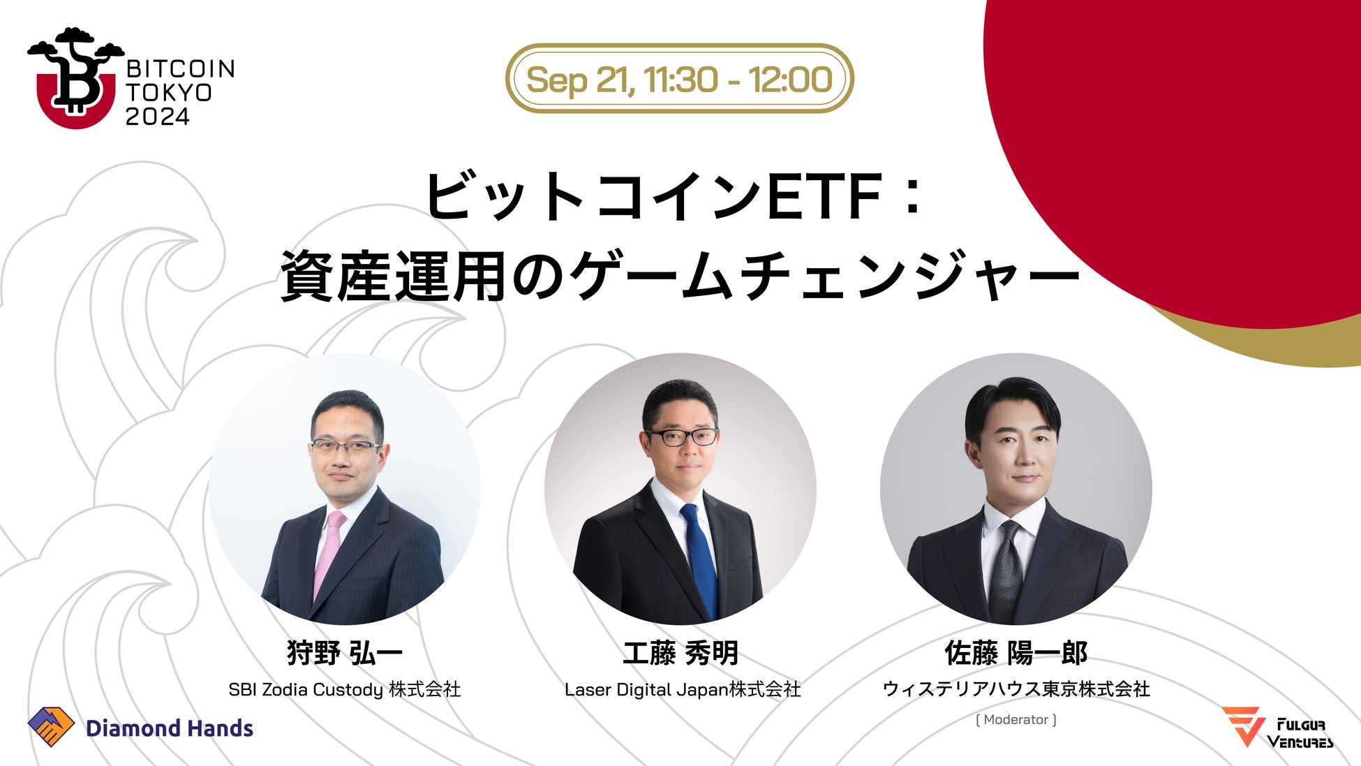 「Bitcoin Tokyo2024」は2024年9月21日(土)、22日(日)に、フルグル合同会社(本社:東京都千代田区、代表:川合林太郎、以下フルグル)と株式会社Diamond Hands(本社: 愛知県名古屋市、代表: 東晃慈、以下Diamond Hands)が共催する日本初のビットコインに特化をした国際カンファレンスです。