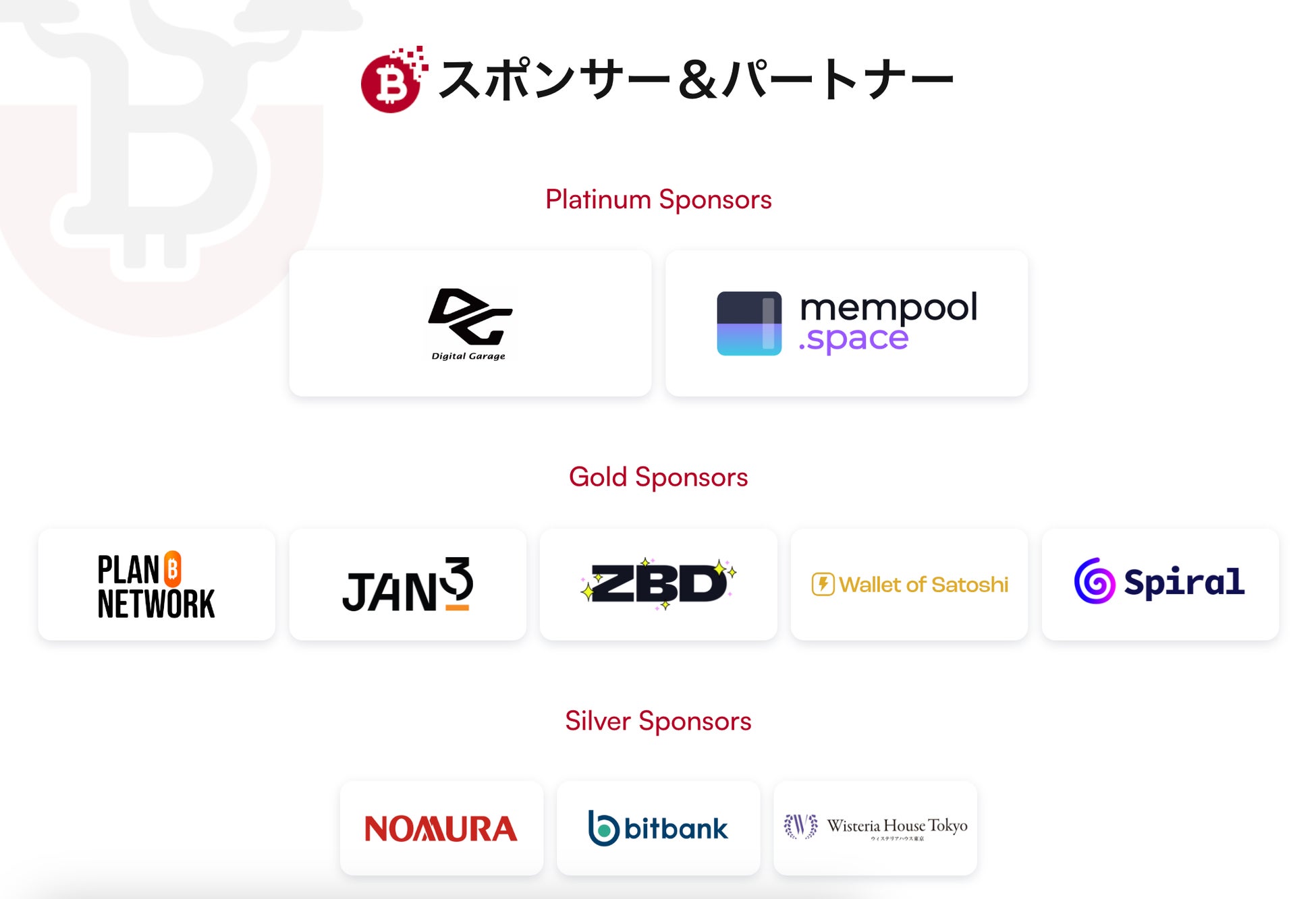 ビットコインに特化した事業をグローバルに展開する外資系企業のほか、ビットコインを事業に取り入れている日本企業の協賛が決まっています。
