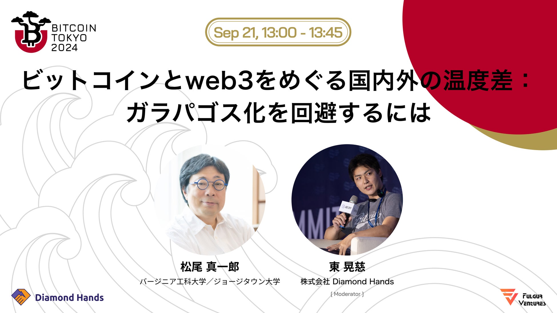 Diamond Hands 共同創業者兼CEOの東晃慈氏がアメリカの首都ワシントンDCを拠点とする松尾教授に、大統領戦の争点となるほど普及が進んだアメリカのビットコイン最新事情、ビットコインに関して拡大する一方の日本と海外のギャップについて問い、日本が海外にキャッチアップする方法を議論します。