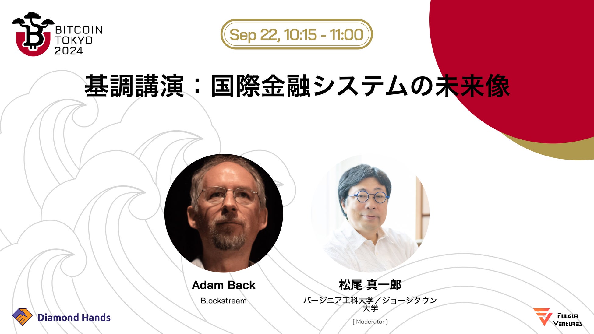 ビットコイン誕生につながるプルーフオブワークHashcashを考案したBlockstream CEOのAdam Back氏と、ジョージタウン大学とバージニア工科大学の松尾 真一郎研究教授が、ビットコインという技術スタックが国際金融システムに今後どのように取り込まれていくのか、これからの金融インフラに求められる要件を議論します。
