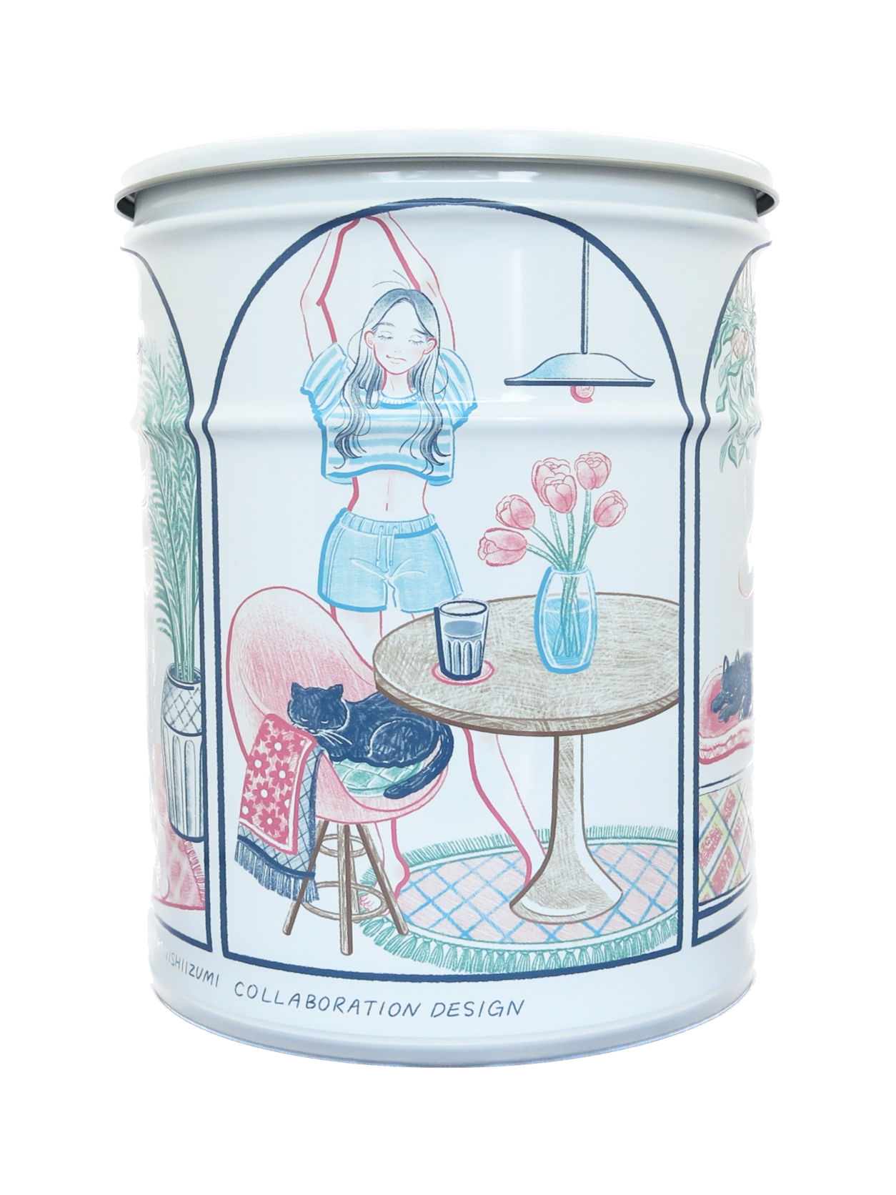 『かけがえのないプライベートな時間を彩るペール缶』をコンセプトにしており、ペール缶の工業的なイメージを払拭するおしゃれなデザインが特徴。コラボイラストレーター描き下ろしのデザインは部屋を彩るアート作品としても楽しめる。