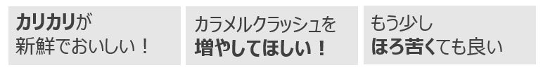 - 別添キャラメリゼの「増量」で、Brulee最大の特長かつ評価ポイントである「カリッと」が、もっと楽しめるようになりました。