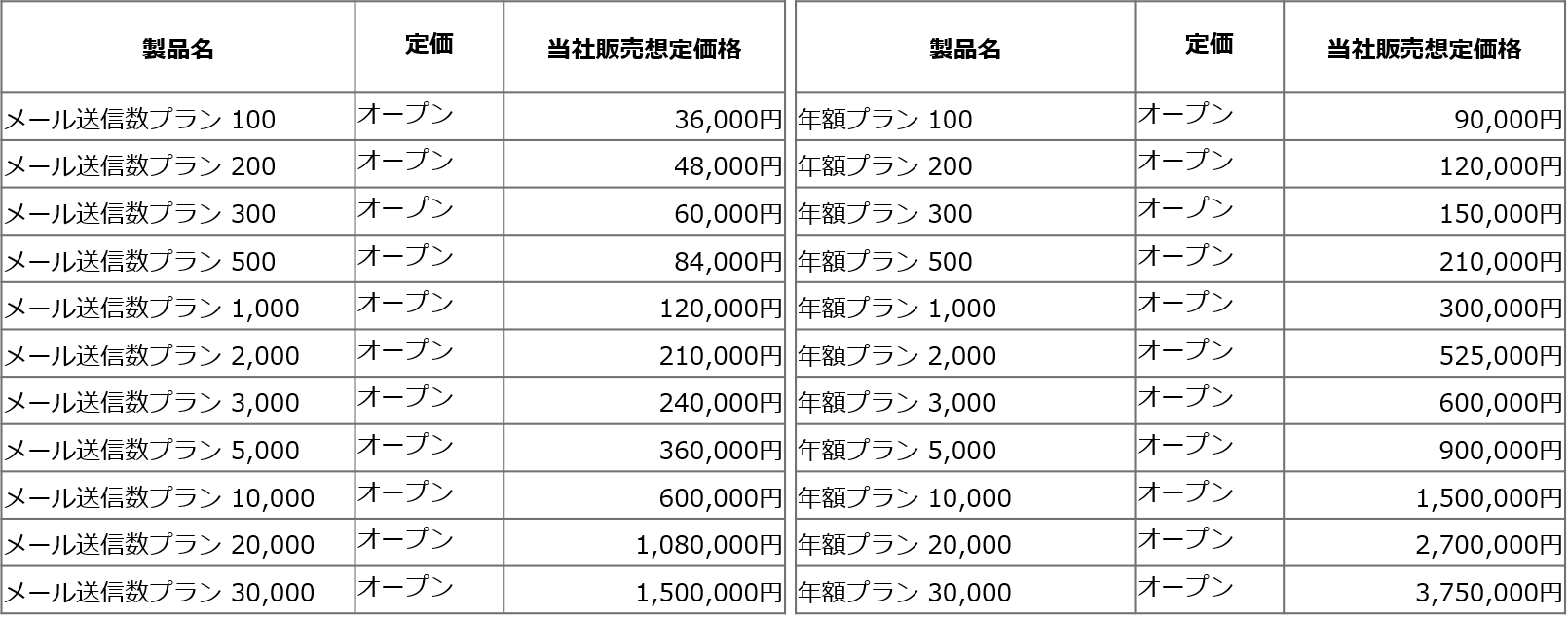 訓練メールの総送信数に応じて(メール送信数)プランが選択できます。