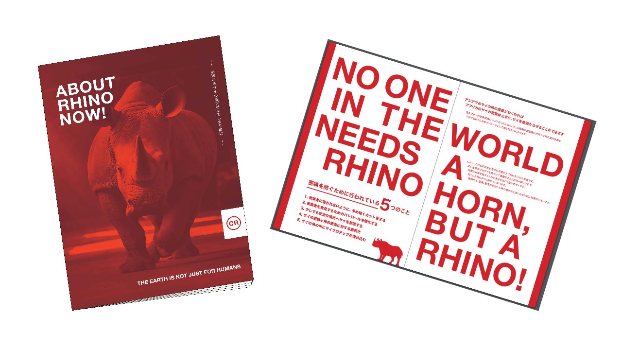 会場にはサイの種類や問題について解説する赤いリーフレット(A5・8頁)も用意しています。