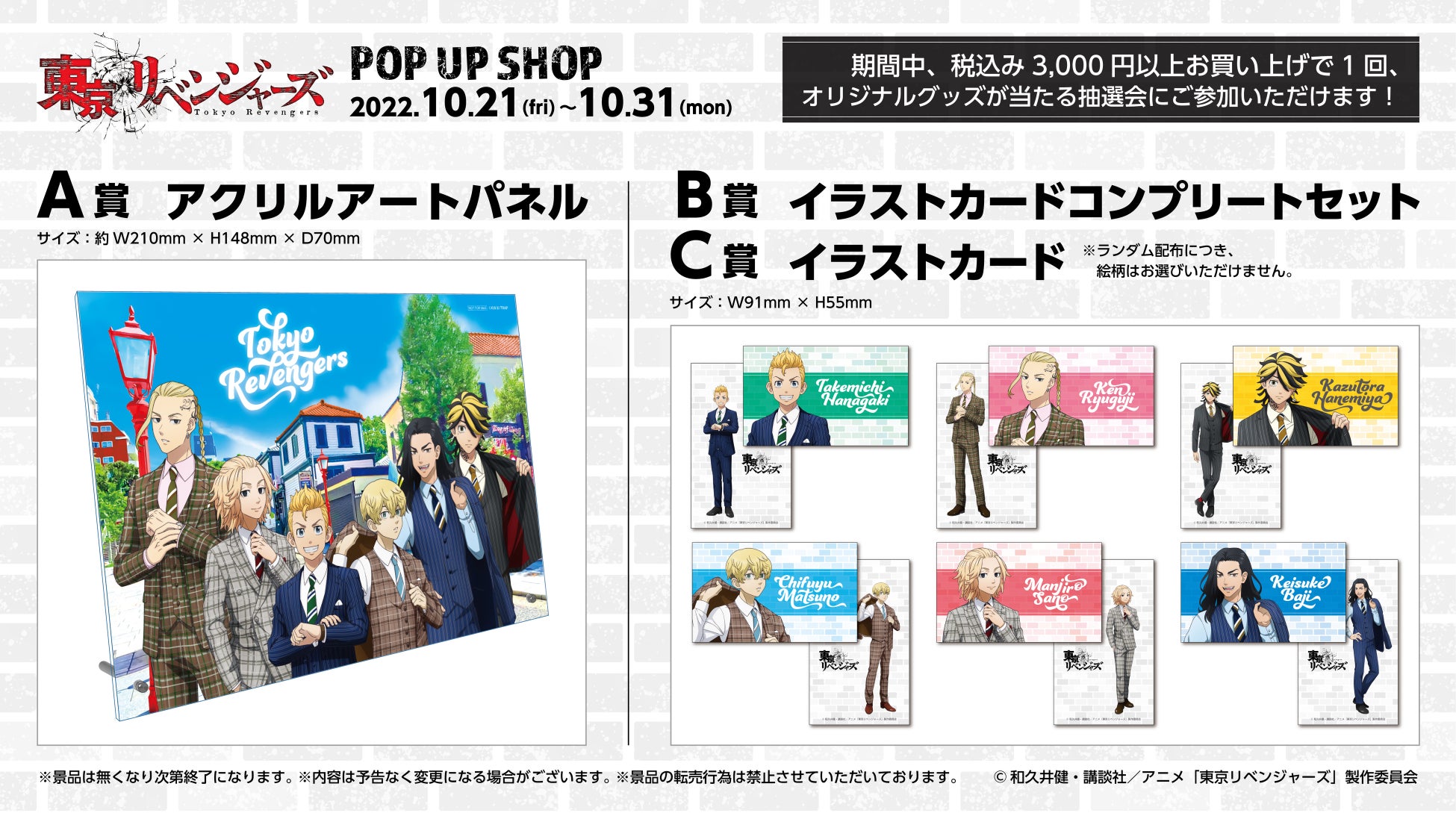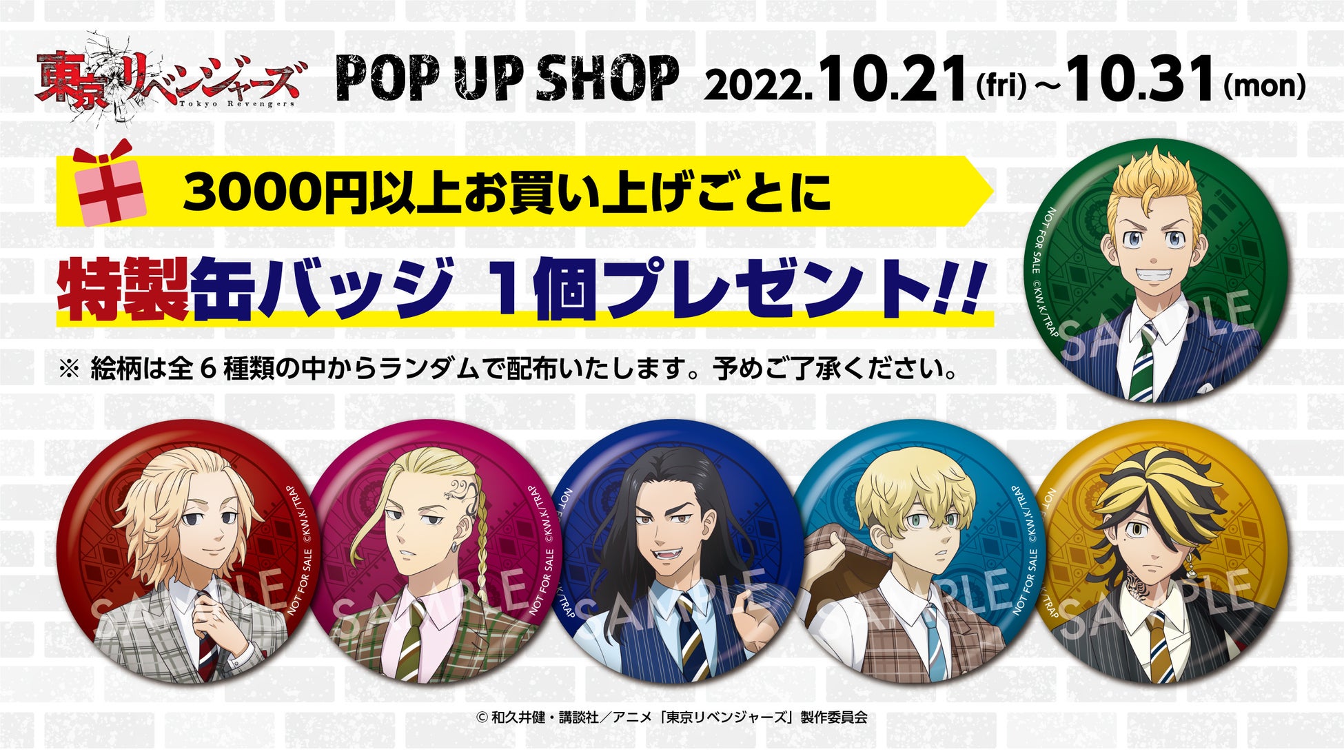 2022年10月21日(金)よりなんばマルイ3階イベントスペースにて大人気TVアニメ『東京リベンジャーズ』POP UP SHOPを開催いたします。