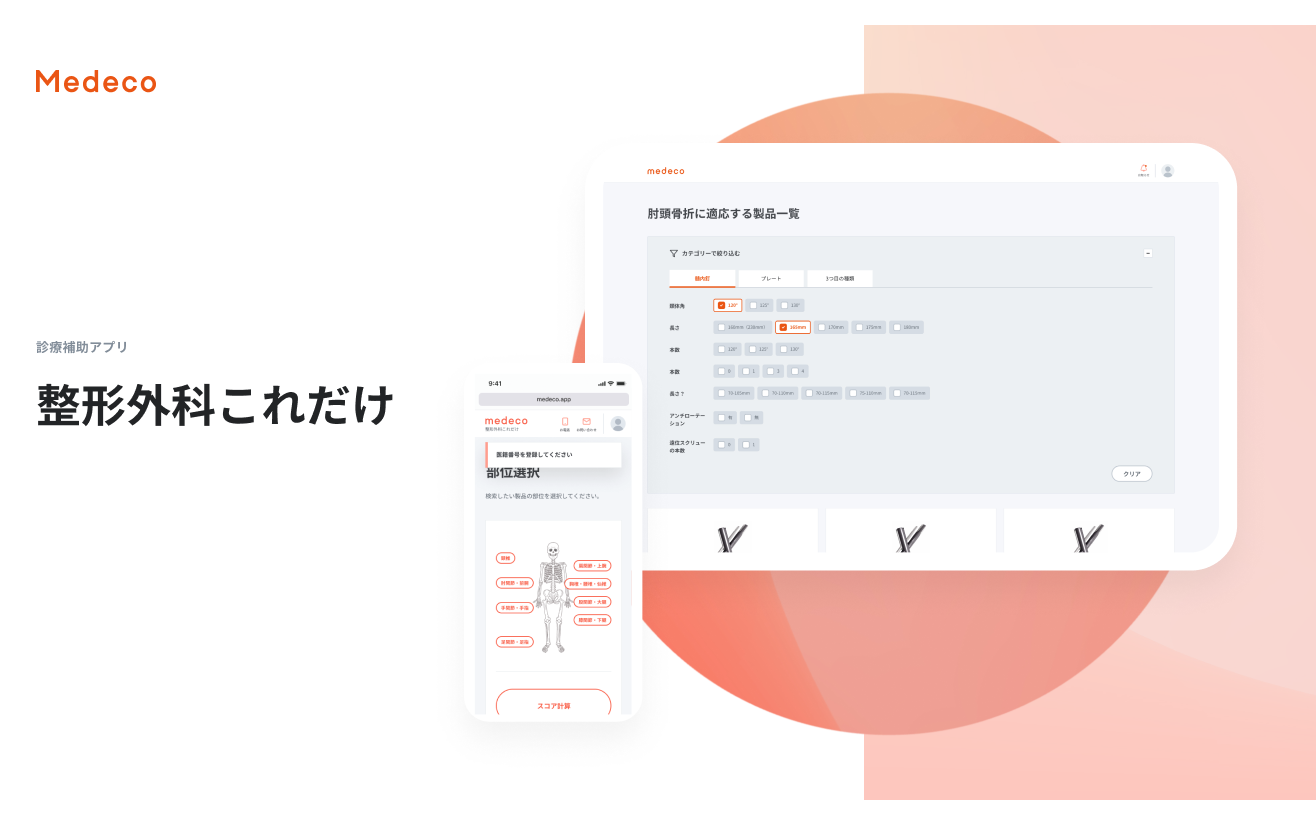 【Medeco】診療補助アプリ「整形外科これだけ」を公開。2ヶ月で医療者ユーザー数1,000名を突破。