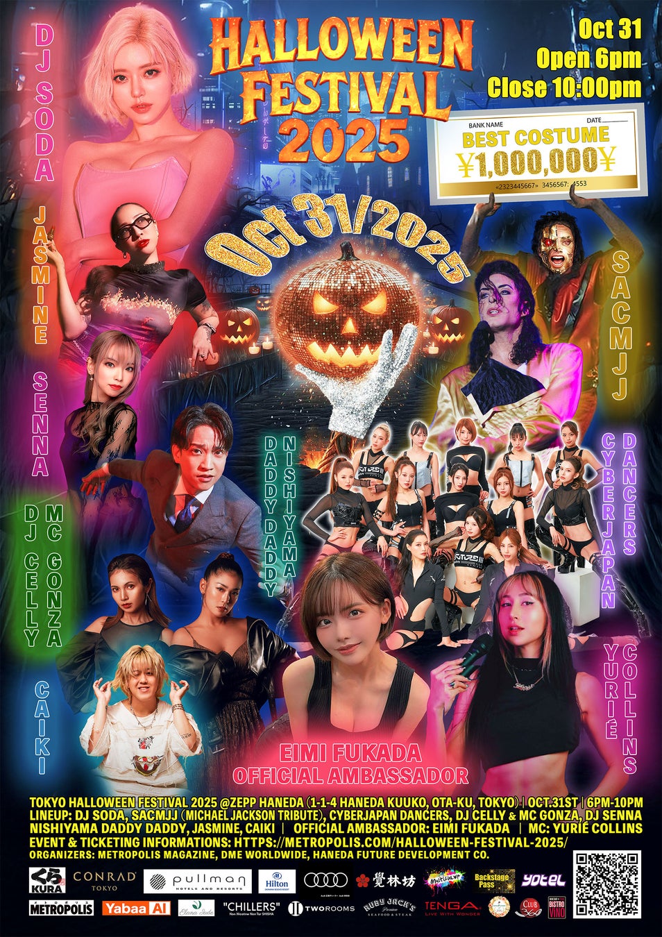 この上映は、TOKYO HALLOWEEN FESTIVAL 2025のプログラムの一つとして開催。本イベントは東京最大級の国際的ハロウィンイベントで、DJ SODA、Yurié Collins (ユリエ・コリンズ)、SacMJJ (マイケル・ジャクソン トリビュートアーティスト)、CYBERJAPAN DANCERS、西山ダディダディなどの出演者によるパフォーマンスに加え、賞金100万円のコスチュームコンテストを開催する。