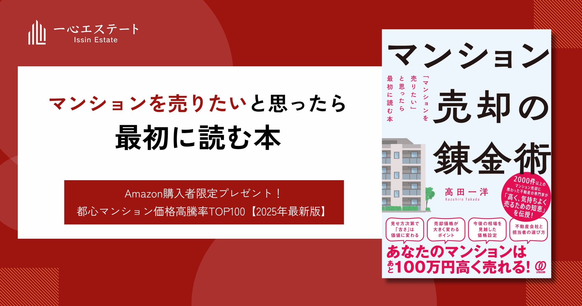 Amazonにてご購入いただいた方を対象に、最新の不動産市況が一目でわかる「都心マンション高騰率ランキングTOP100【2025年最新版】」をプレゼントいたします。特典は、一心エステート公式LINEアカウントより取得可能です。