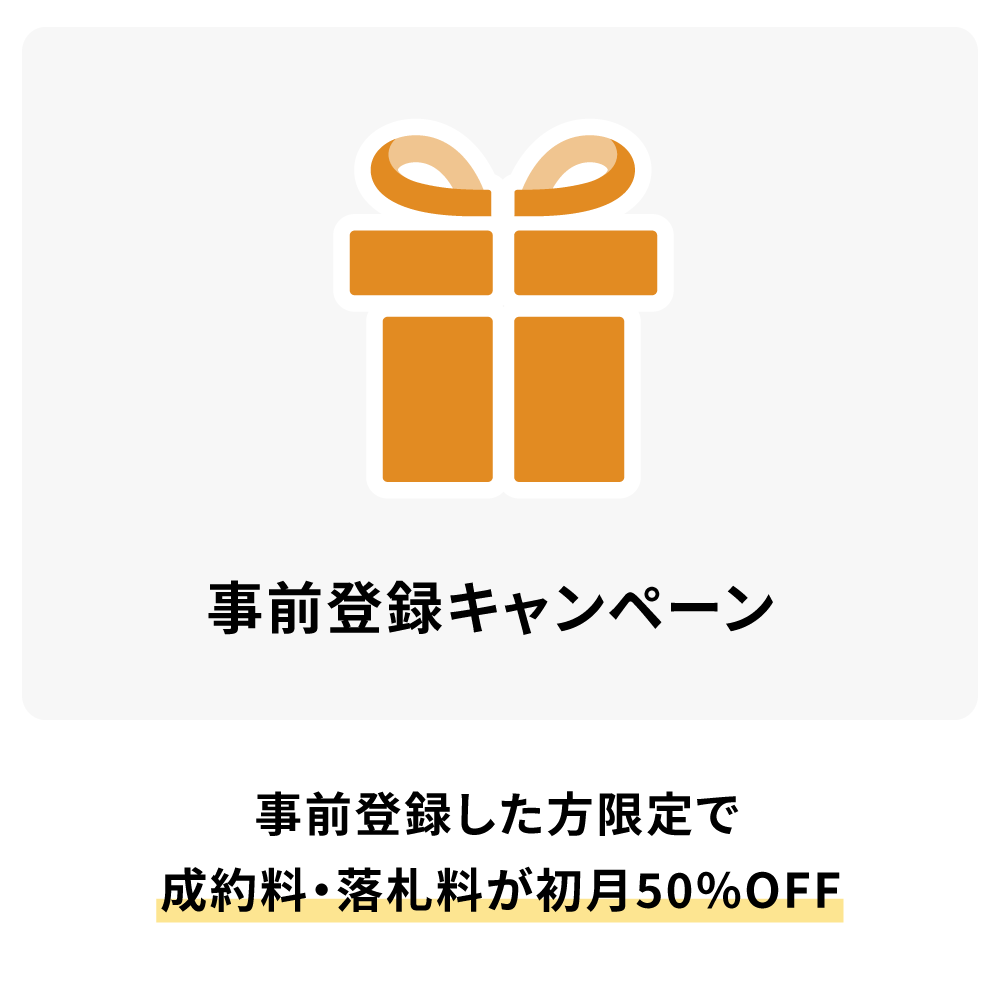事前登録いただいた方限定で、成約料・落札料がお得になるキャンペーンを実施しております。