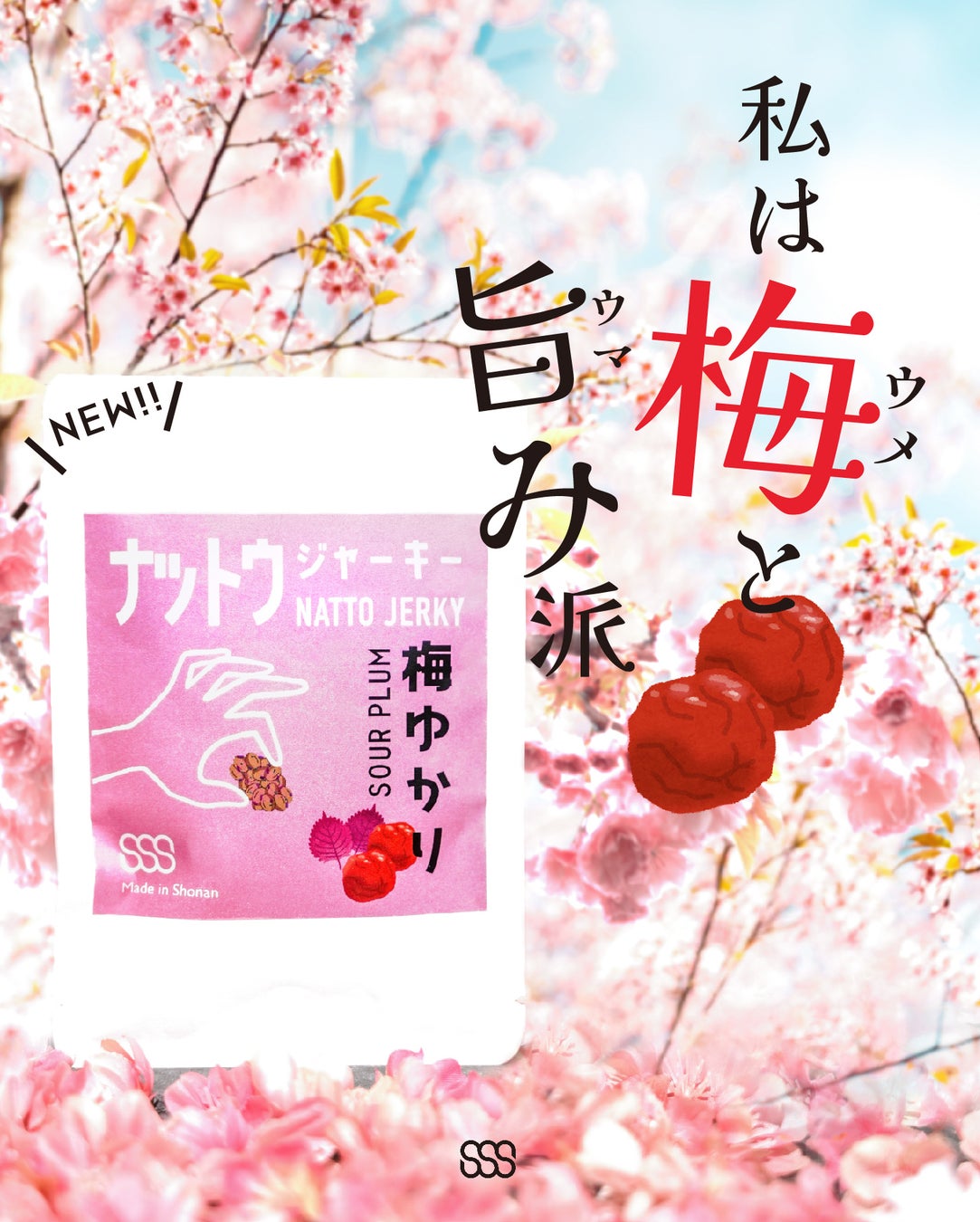 ■ナットウジャーキーの新フレーバー「梅ゆかり味」が新登場!梅とゆかりの爽やかな酸味が、納豆の旨みと相性抜群な味わいに。