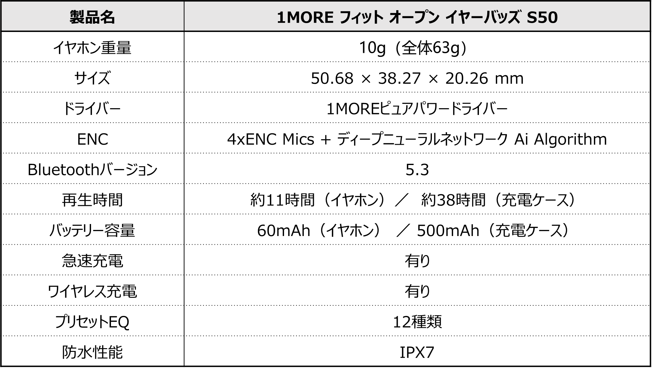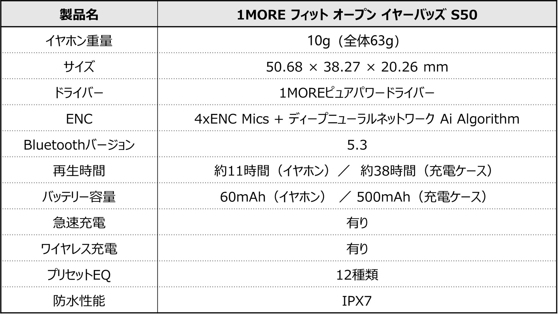 ・製品名:1MORE フィット オープン イヤーバッズ S50