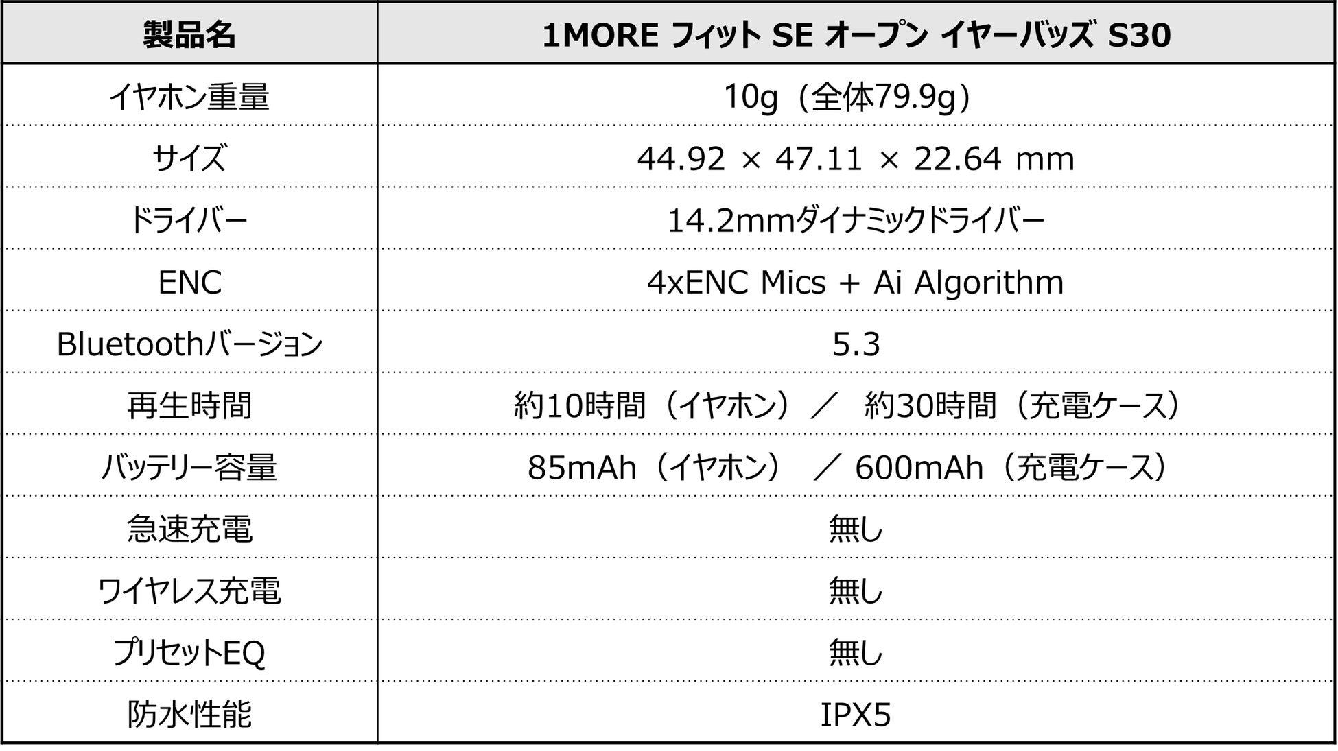・製品名:1MORE フィット SE オープン イヤーバッズ S30