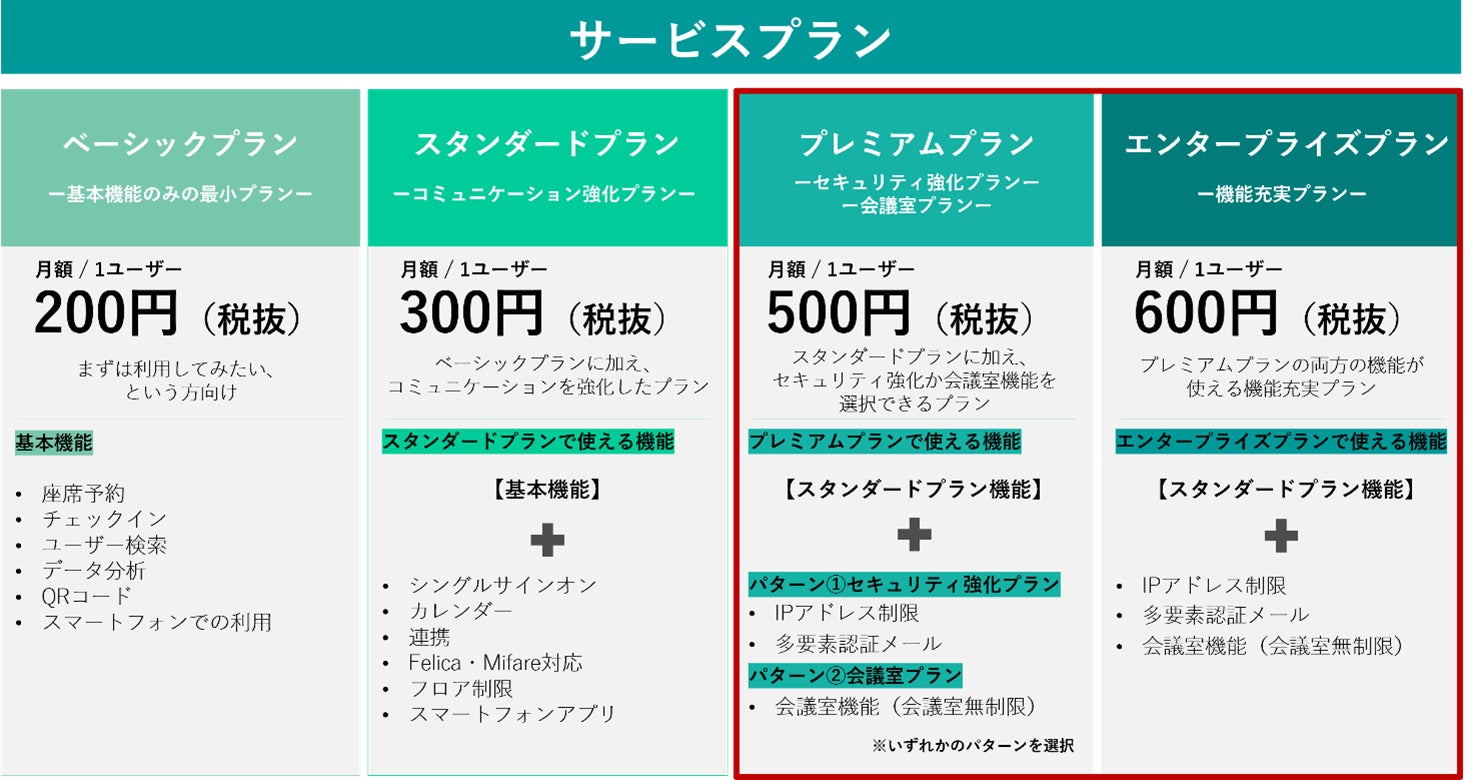 プレミアムプランもしくはエンタープライズプランを利用するユーザー企業は、「会議室予約機能」を利用できます。