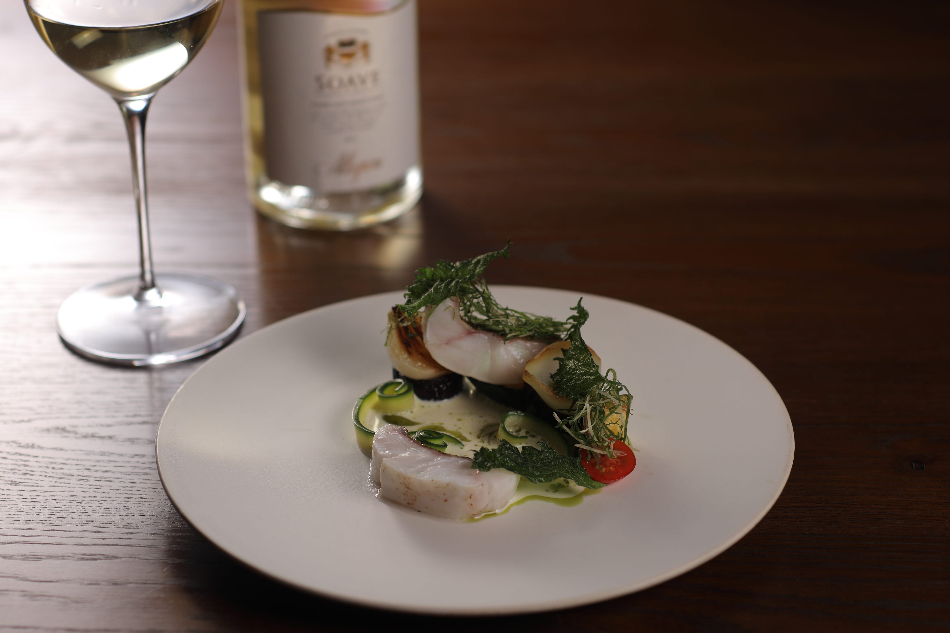身が引き締まりさっぱりとした夏穴子とトマト,バジルを合わせた一皿や、旨みの豊富な水分を逃さない調理を施した"上質な白身魚"と和香草,夏野菜を自家製山椒オイルで仕上げた一皿。