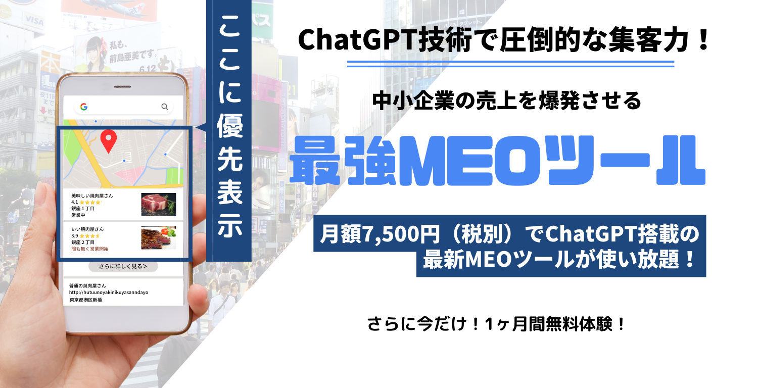 〜業界をリードする全包括的な店舗マーケティングツール:月額7,500円(税別)のMEOブースト!〜
